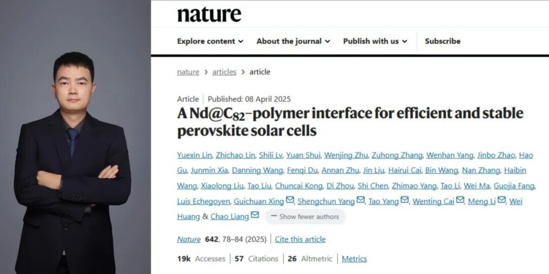 2025年4月8日,我院李萌教授与西安交通大学梁超研究员联合研究团队的研究成果“A Nd@C82–polymer interface for efficient and stable perovskite solar cells”在国际顶级期刊《自然》(Nature)上在线发表。
