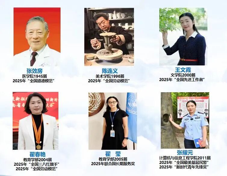 2025年河南大学广大校友扎根各条战线、勇攀事业高峰。其中医学院1945届校友张效房等7人次斩获国家级荣誉称号,教育学部2005届校友翟莹获联合国15年长期服务奖,充分彰显了河大校友的卓越风采与责任担当。