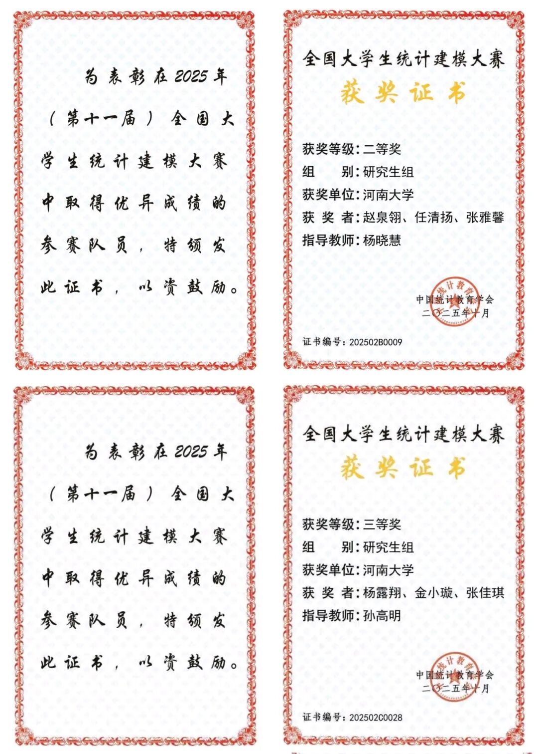 数学与统计学院两支研究生团队凭借扎实的学术功底与创新应用能力,双双获奖。《助力“健康中国2030”战略——面向脑部疾病诊断的多模态脑影像智能融合研究》表现突出,在全国总决赛中荣获河南省唯一的国家二等奖;《红斑鳞状皮肤病智能辅助诊断——基于多模态数据与MedViT方法》荣获国家三等奖。