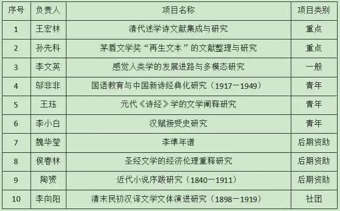 文学院在2025年度国家社会科学基金项目评选中再创佳绩,共获批10项,其中重点项目2项、一般项目1项、青年项目3项、后期资助项目3项、社团项目1项。