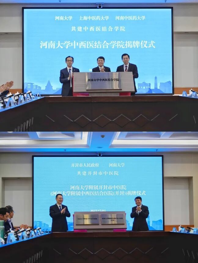 2025年9月28日,上海中医药大学、河南中医药大学、河南大学共建中西医结合学院暨开封市人民政府、河南大学共建开封市中医院签约仪式的举行,标志着三校三地在深化中医药高等教育改革、促进中西医融合创新、服务区域卫生健康事业方面迈出了具有里程碑意义的关键一步。