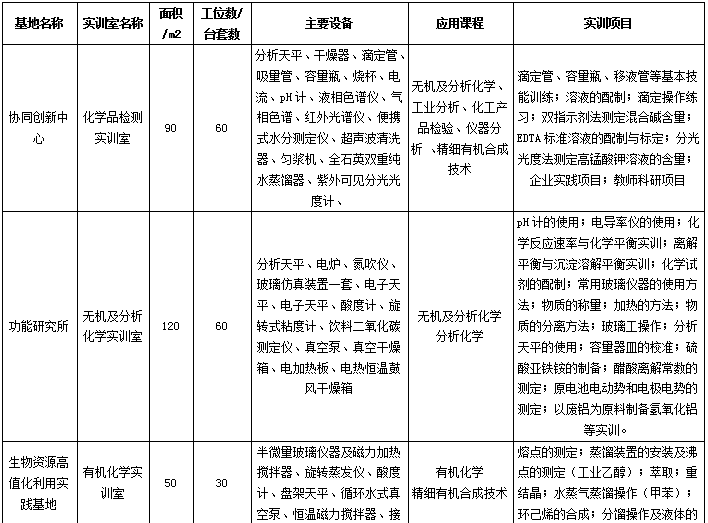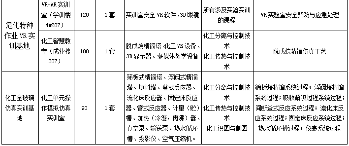 专业群建有福建省应用化工技术实训基地和省级化工虚拟仿真实训基地,现有基础化学实训室、计算机模拟仿真实训室、VR实训室、玻璃仿真实训室、理化检测实训室,以及在建的国家级化工虚拟仿真实训中心,包括危化特种作业VR实训室、化工生产工艺仿真实训室、化工单元操作模拟仿真实训中心、化工产品检测模拟仿真实训中心。本专业建有“教育部、福建省精细化工应用技术协同创新中心”,实验实训教学体系基本满足专业生产性实践教学以及1+X职业技能等级证书、化工总控工等技能证书的培训和考证的需要,见表2。 表2 校内实训室