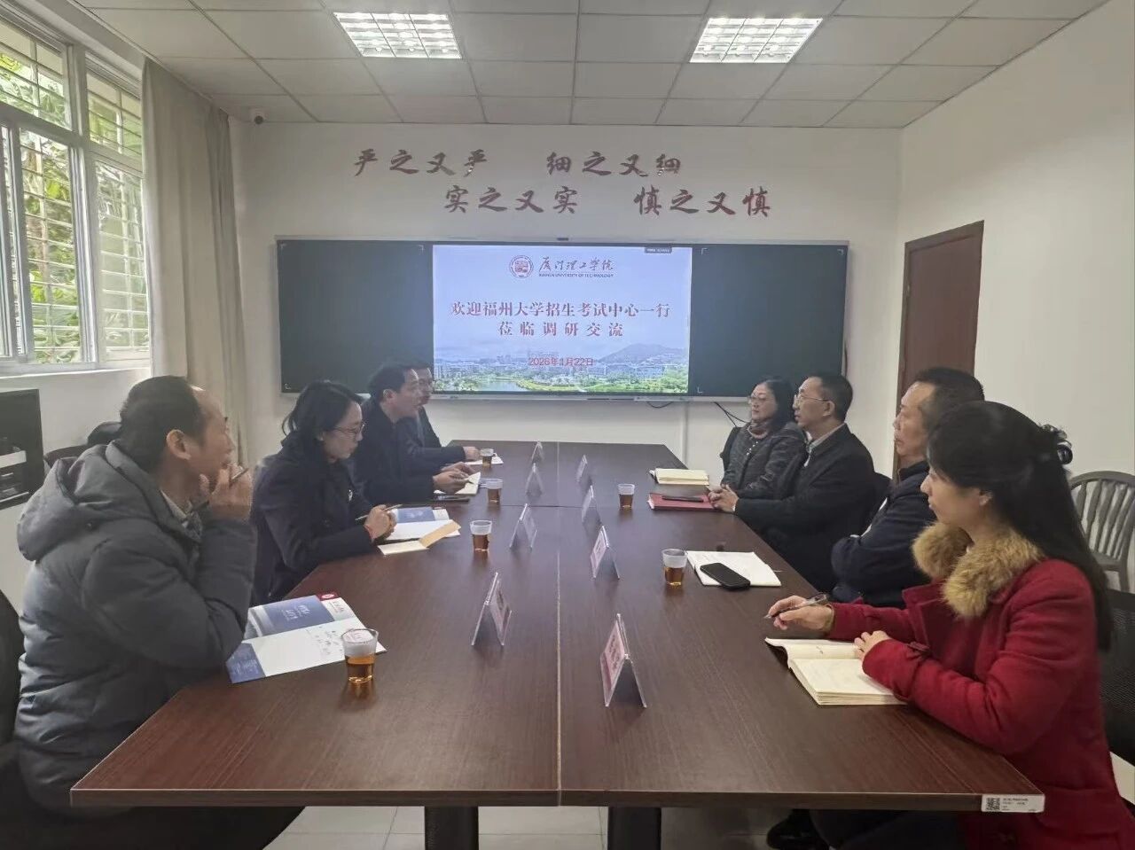 为持续优化招生考试工作全流程管理,精准提升招生宣传、考试组织及信息化建设质效,1月22日,我校招生考试中心副主任钟光声带领相关工作人员一行三人,先后赴厦门理工学院、厦门大学开展专题调研学习,旨在借鉴兄弟高校先进经验,为学校招生考试工作高质量发展注入新动能。