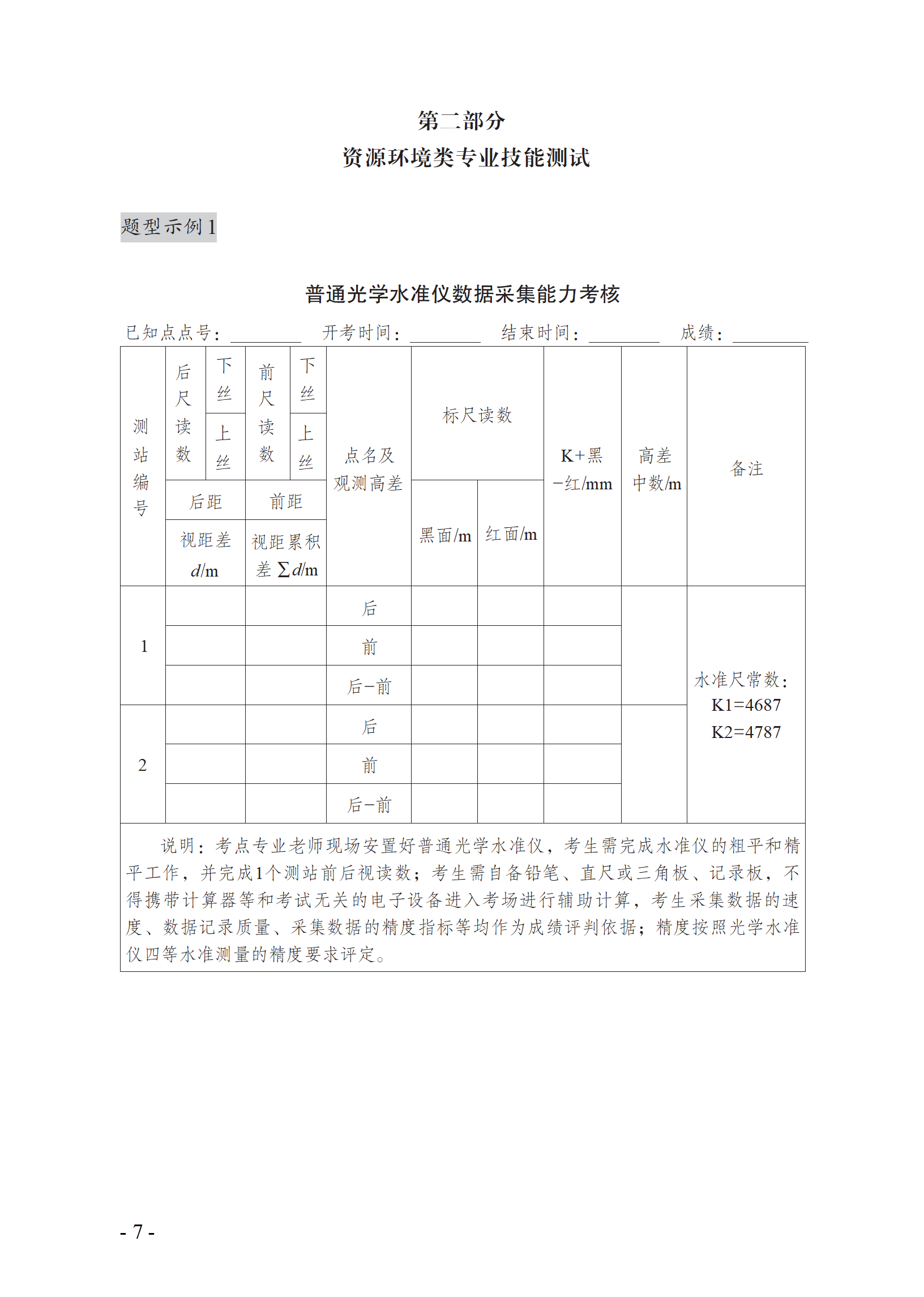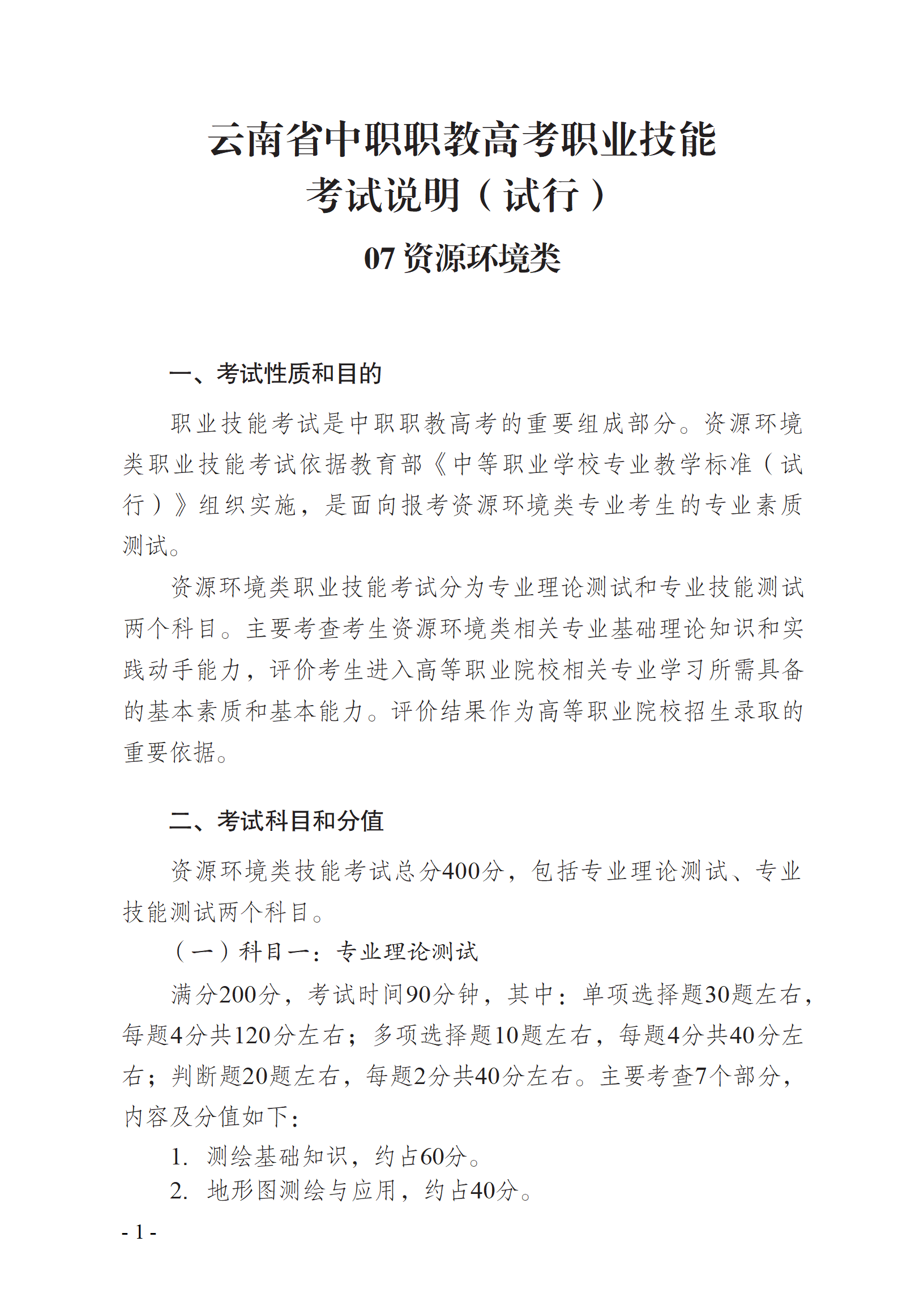 云南省中职职教高考职业技能 考试说明(试行) 07 资源环境类