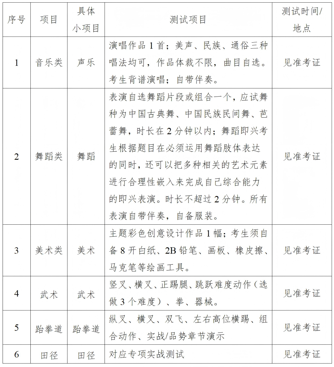 2.报考田径田赛专项的考生在跳高、跳远、三级跳远、铅球、铁饼中选择一个项目进行考试。