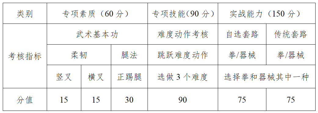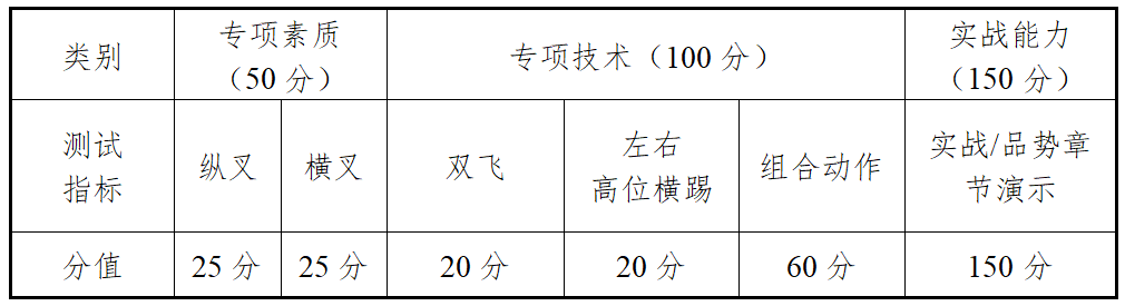 四、实战能力测试——自选套路和传统套路(150分)