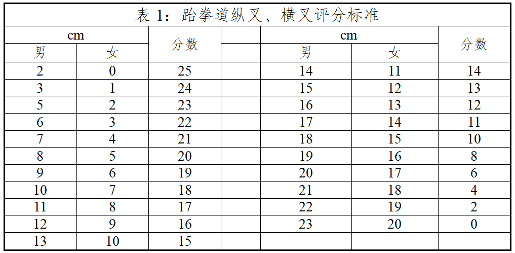 表3左右高位横踢评分表
