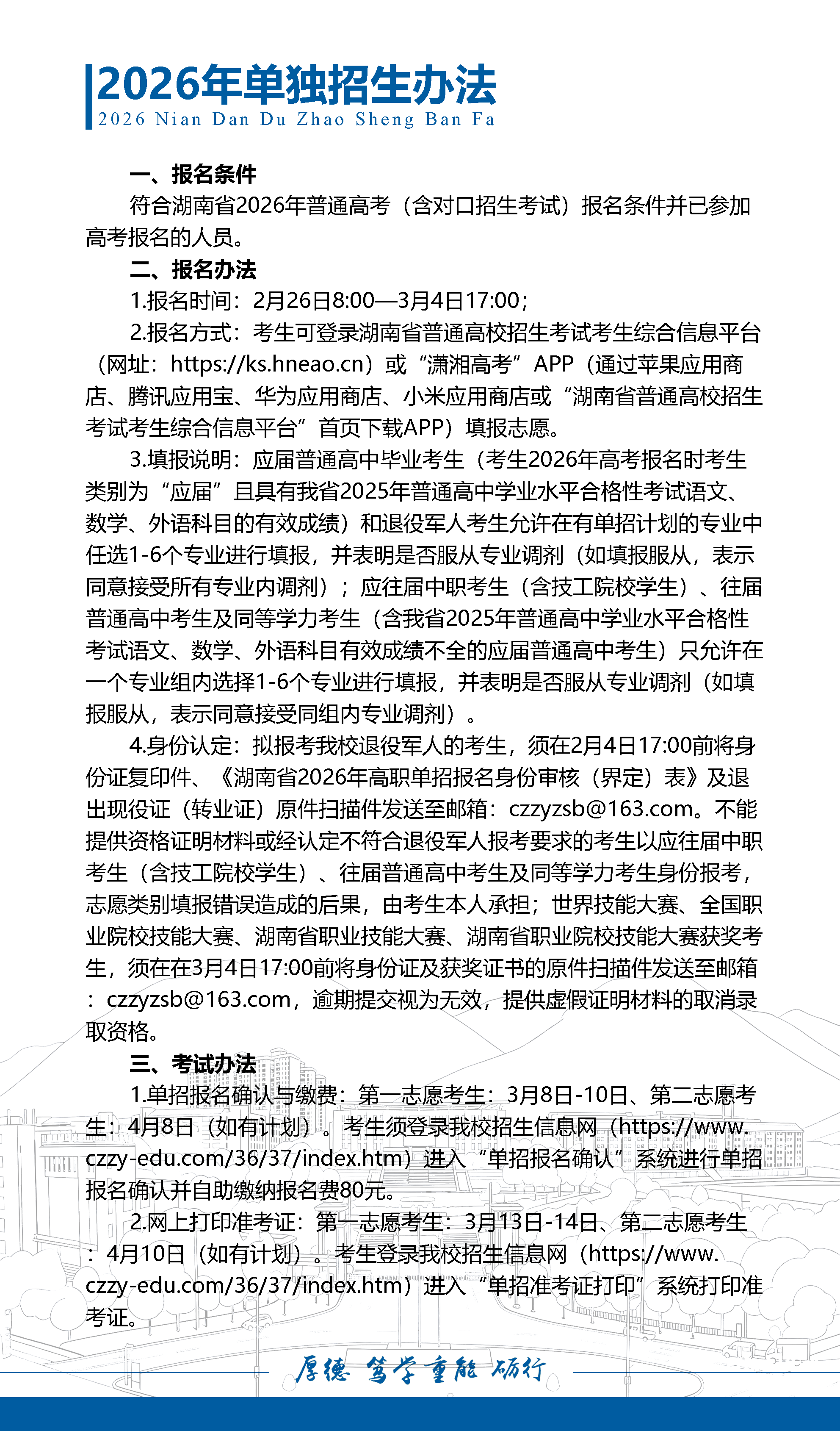 郴州职业技术学院2026年单独招生简章