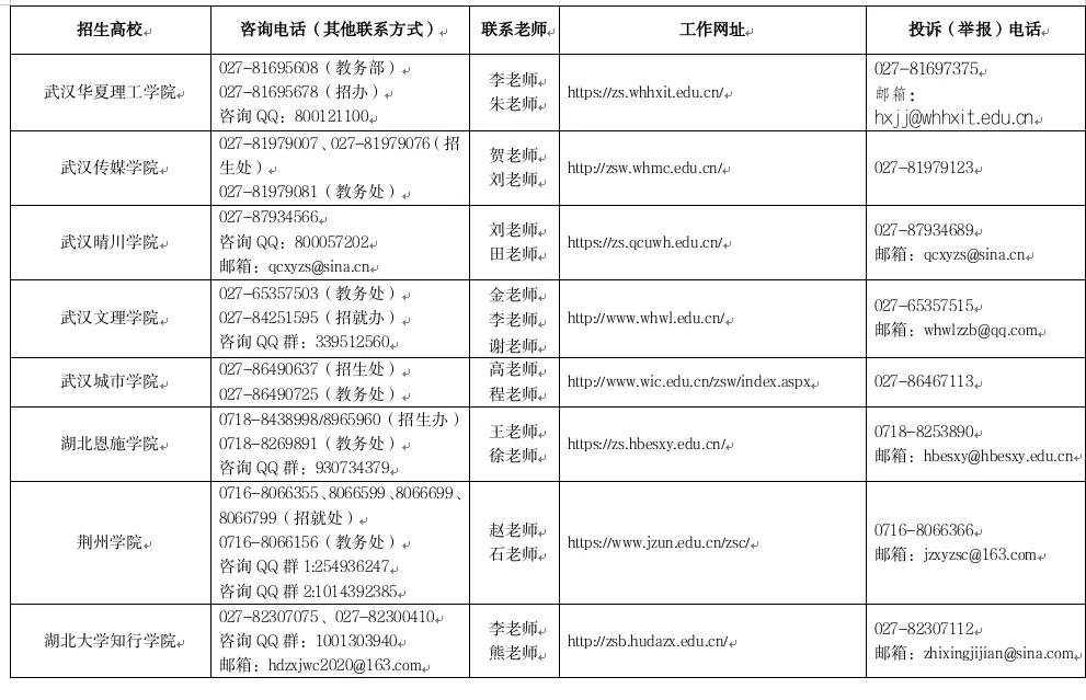 其他专升本有关工作政策咨询省教育厅高等教育处,联系电话:027-87328031。