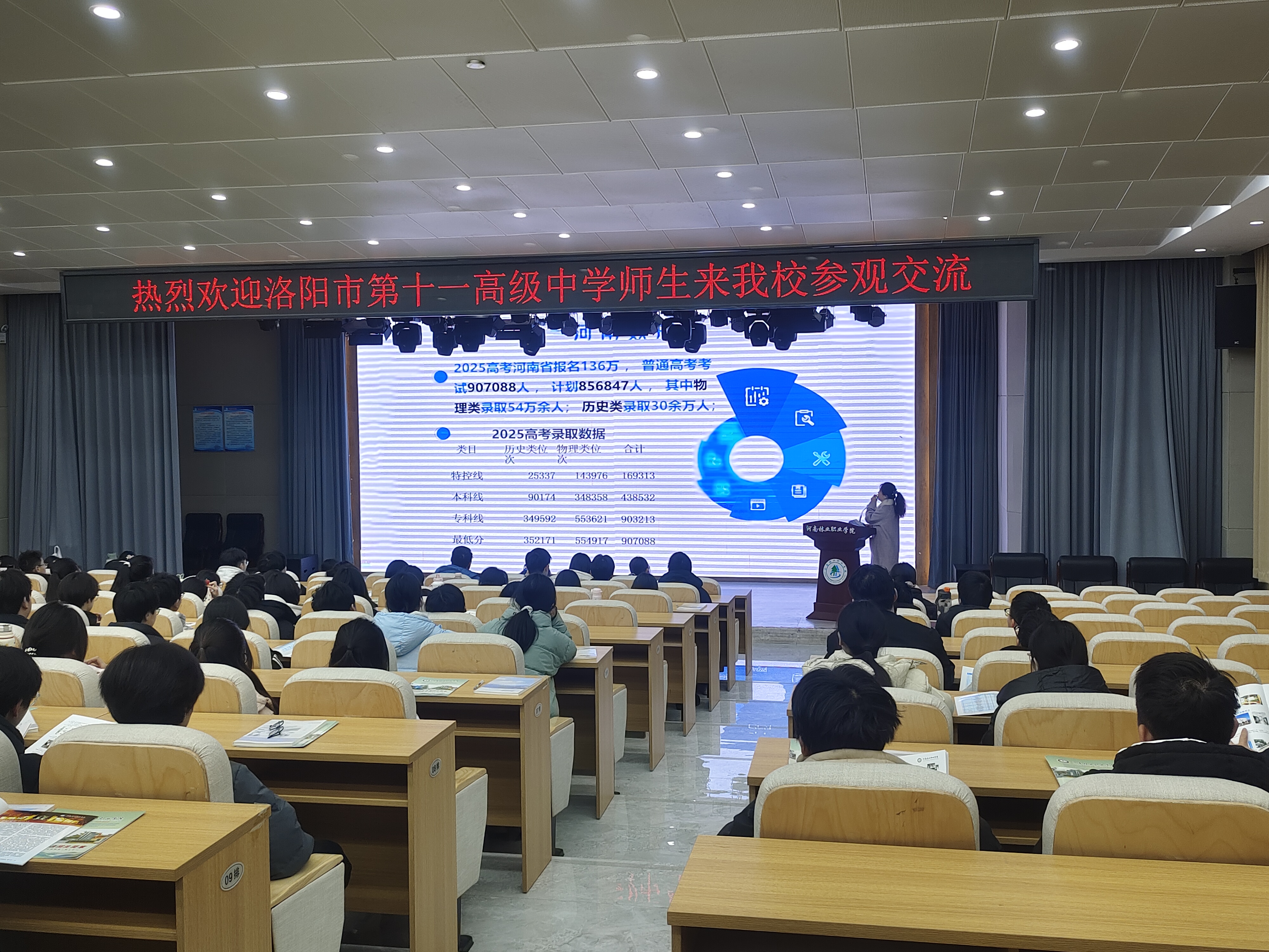1月27日上午,我校特邀洛阳市第十一高级中学一百余名师生来校开展参观交流活动。此次活动旨在助力高中学生全面深入了解大学生活,提前进行生涯规划。