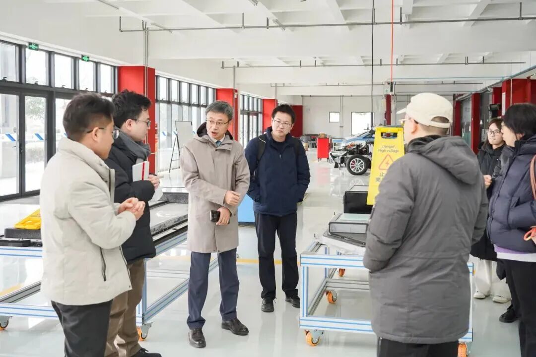签约仪式前,在学校领导的陪同下,科大讯飞一行及特邀专家,先后参观新能源汽车实训室、校企合作中心、国际标准F3赛道及图书馆,全方位了解学校的办学特色与实训保障条件。