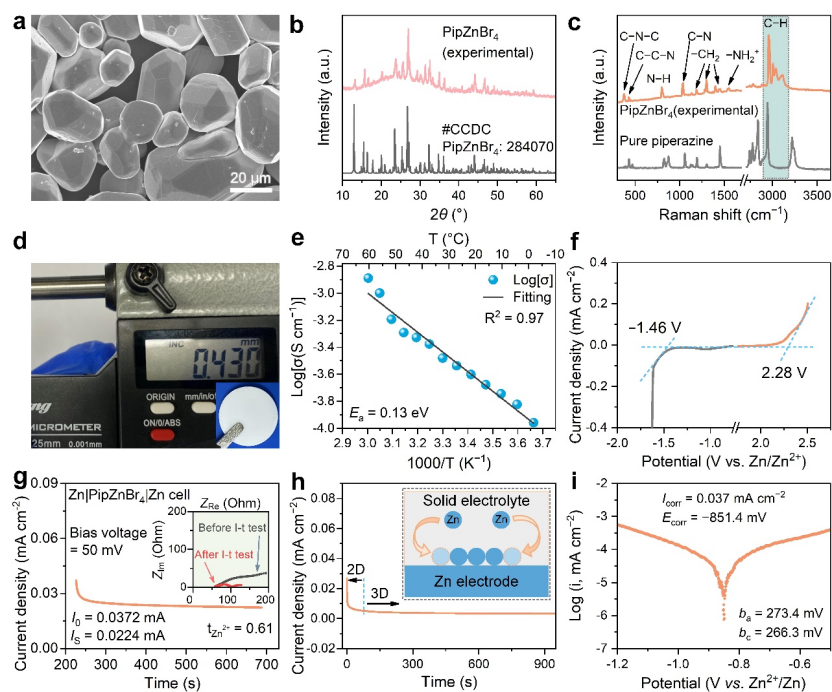 PipZnBr4固态锌离子电解质的结构表征与电化学性能