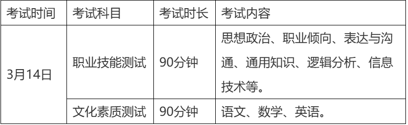 3.D类和E类考生免予文化素质测试。职业技能测试由学校组织,采取笔试方式进行,重点考察学生的职业适应性和职业技能,满分300分。