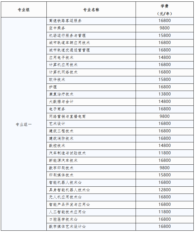 注:上表中标注“☆”的为我校已申报正在等待上级主管部门审批的拟新增专业,具体招生专业及计划以省教育考试院网上填报志愿系统数据为准。