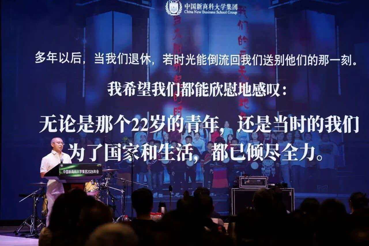 2025年末,我们向海而生,再次出发,2026年,这份生机依旧存续,带着心中的伟大走向无畏的春风。祝新商科的每位前行者、同行者终会在疾风中奔腾、凯旋,我们坚信,前方定有海阔天空。