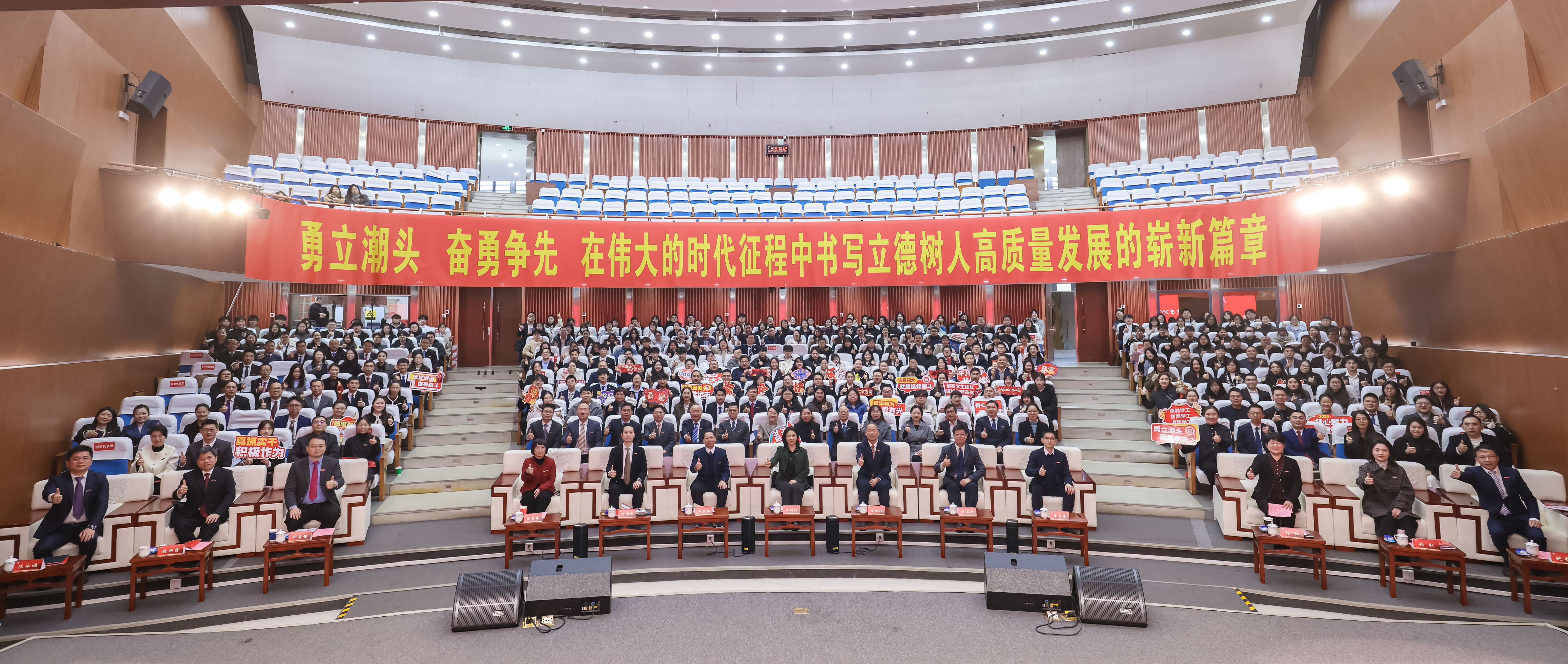 融媒中心讯/1月23日上午,福州大学2025年度学生思想政治教育工作总结表彰大会在旗山校区博学厅举行。校党委书记、校长吴明红院士出席大会并讲话。校党委副书记王向阳,校党委常委、纪委书记、监察专员郑煦林出席会议,党政办公室、党委组织部、党委宣传部、学生工作部(处)、团委、教务处、研究生院和网信办等机关部处单位负责同志,全体学生政工干部、兼职辅导员代表、思政课教师和班主任代表、至诚学院全体辅导员等300余人参加会议。会议由校党委副书记王向阳主持。