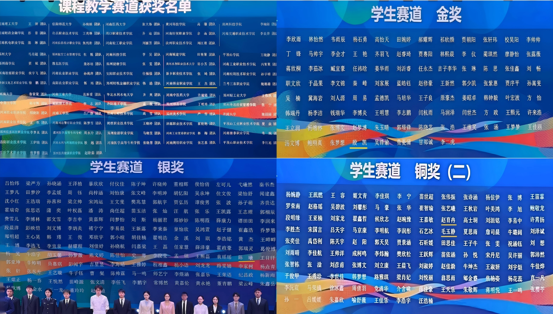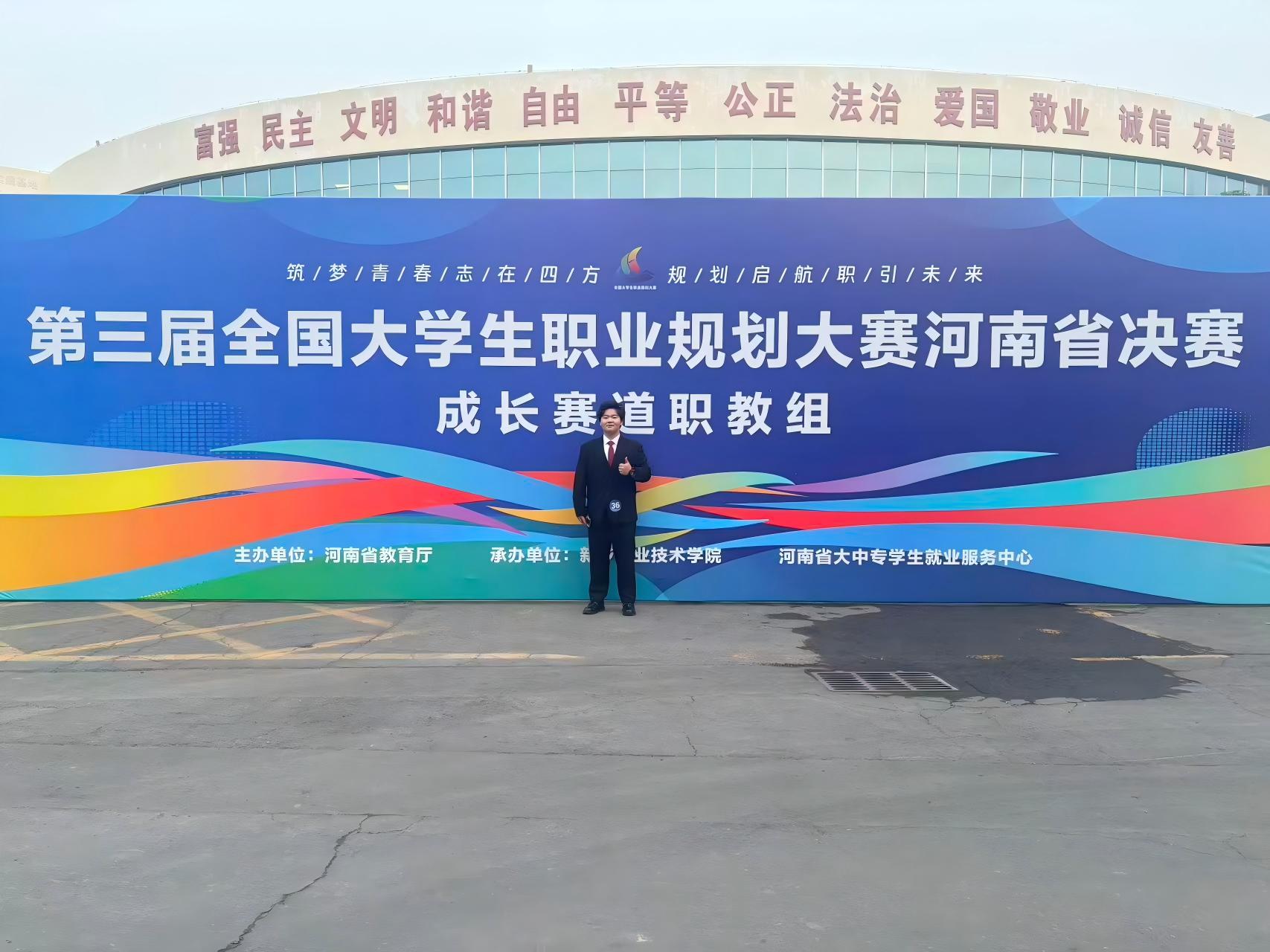 1月25日至26日,第三届全国大学生职业规划大赛河南省决赛职教组在新乡举行,我校信息工程学院殷凯获成长赛道金奖,旅游与食品学院陈曦获成长赛道银奖,航空工程学院毛玉静获成长赛道铜奖,信息工程学院赵育冉获就业赛道铜奖,王杰、王鑫、刘冰、邓建锋、刘军团队获课程教学赛道银奖,首次实现该类赛事省赛金奖突破!