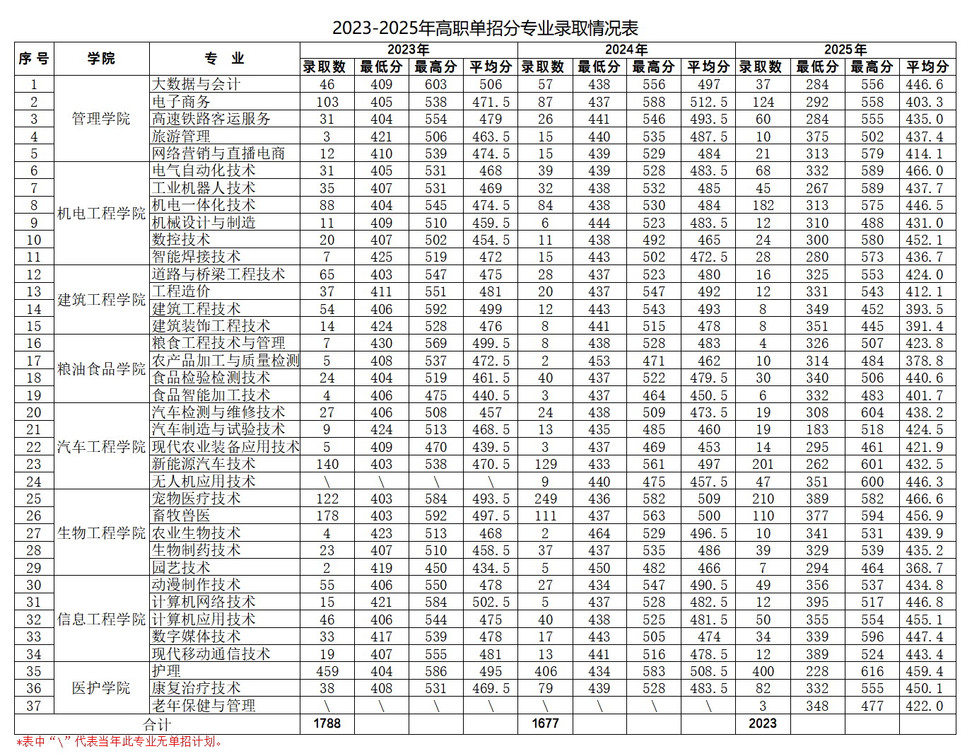 吉林工程职业学院2023-2025年分类考试录取情况一览表