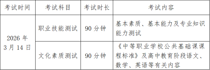 3.D类和E类考生免予文化素质测试。职业技能测试由学校组织,采取笔试方式进行,重点考察学生的职业适应性和职业技能,满分300分。