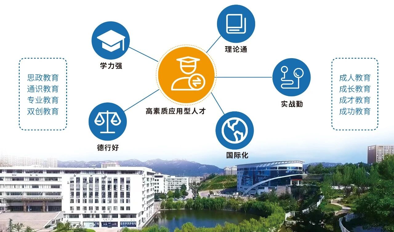 学校全面贯彻党的教育方针,坚持社会主义办学方向和公益性办学原则,坚持地方性、应用型办学定位。秉承“文明、博学、实践、创新”的校训,实施“质量立校、人才强校、特色兴校、创新活校”的发展战略,紧紧围绕国家和地方经济社会发展需要,落实立德树人根本任务,以教学为中心,以能力培养为重点,构建了“校企孪生齐相长”的办学模式,坚持五育并举,培养德智体美劳全面发展的高素质应用型人才。