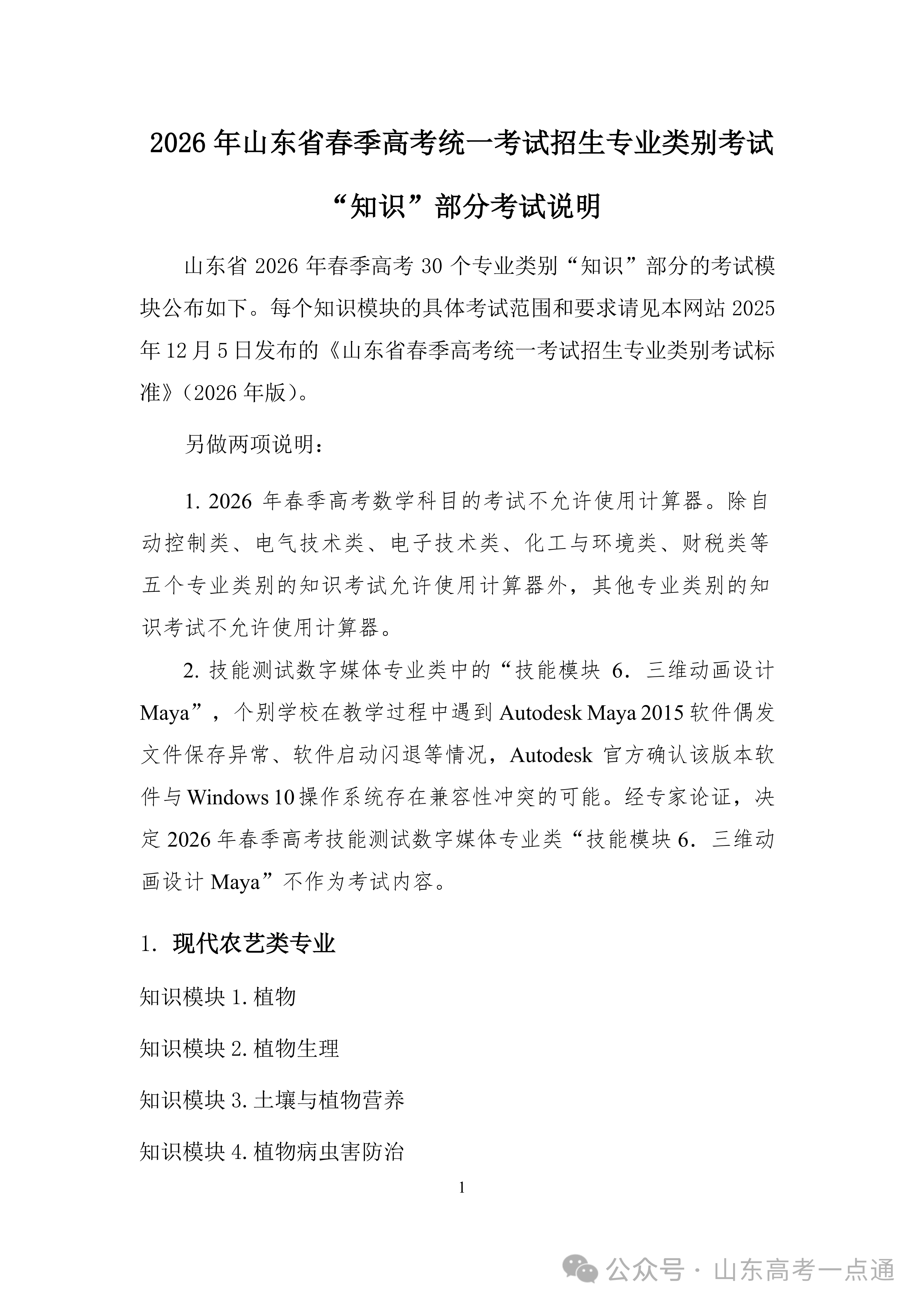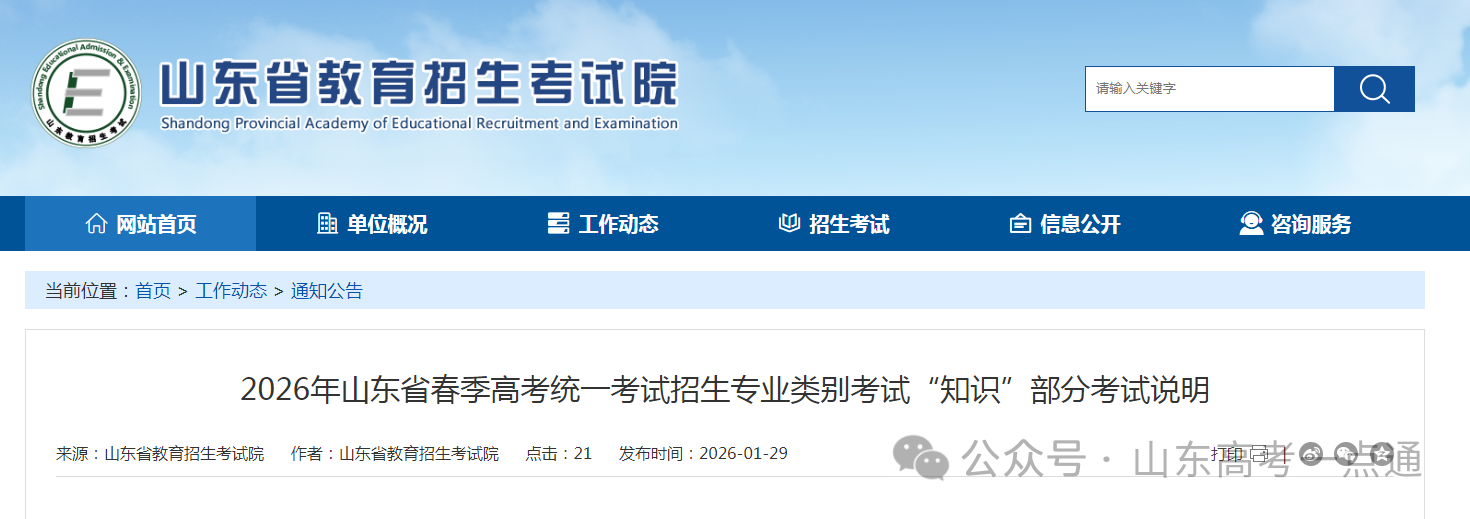 刚刚,山东省教育招生考试院发布了《2026年山东省春季高考统一考试招生专业类别考试“知识”部分考试说明》,一起来看~
