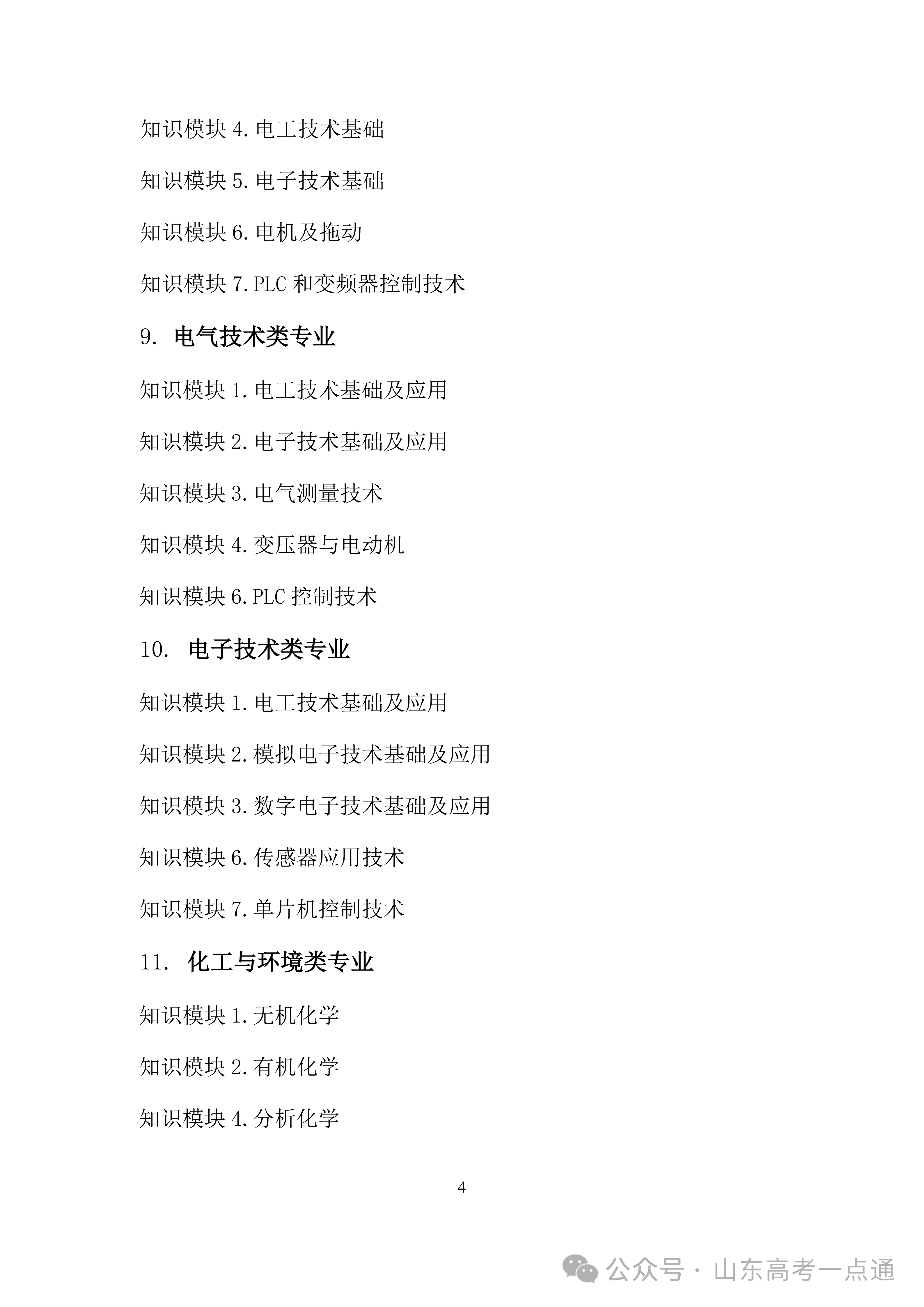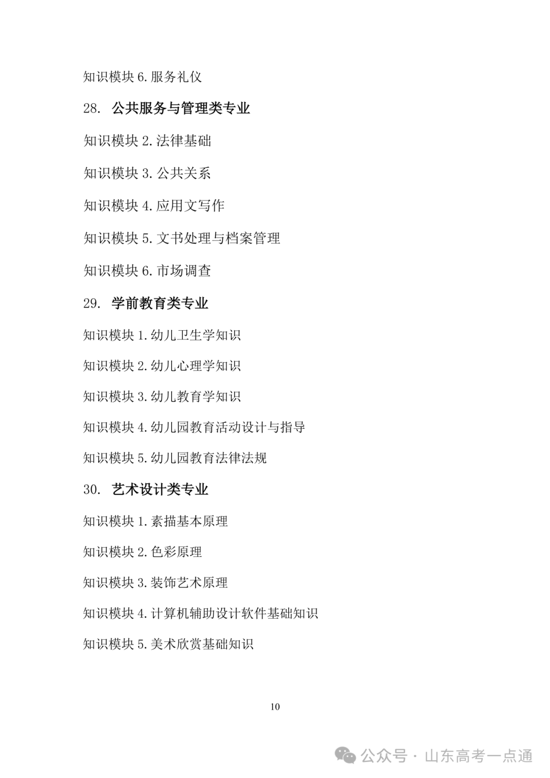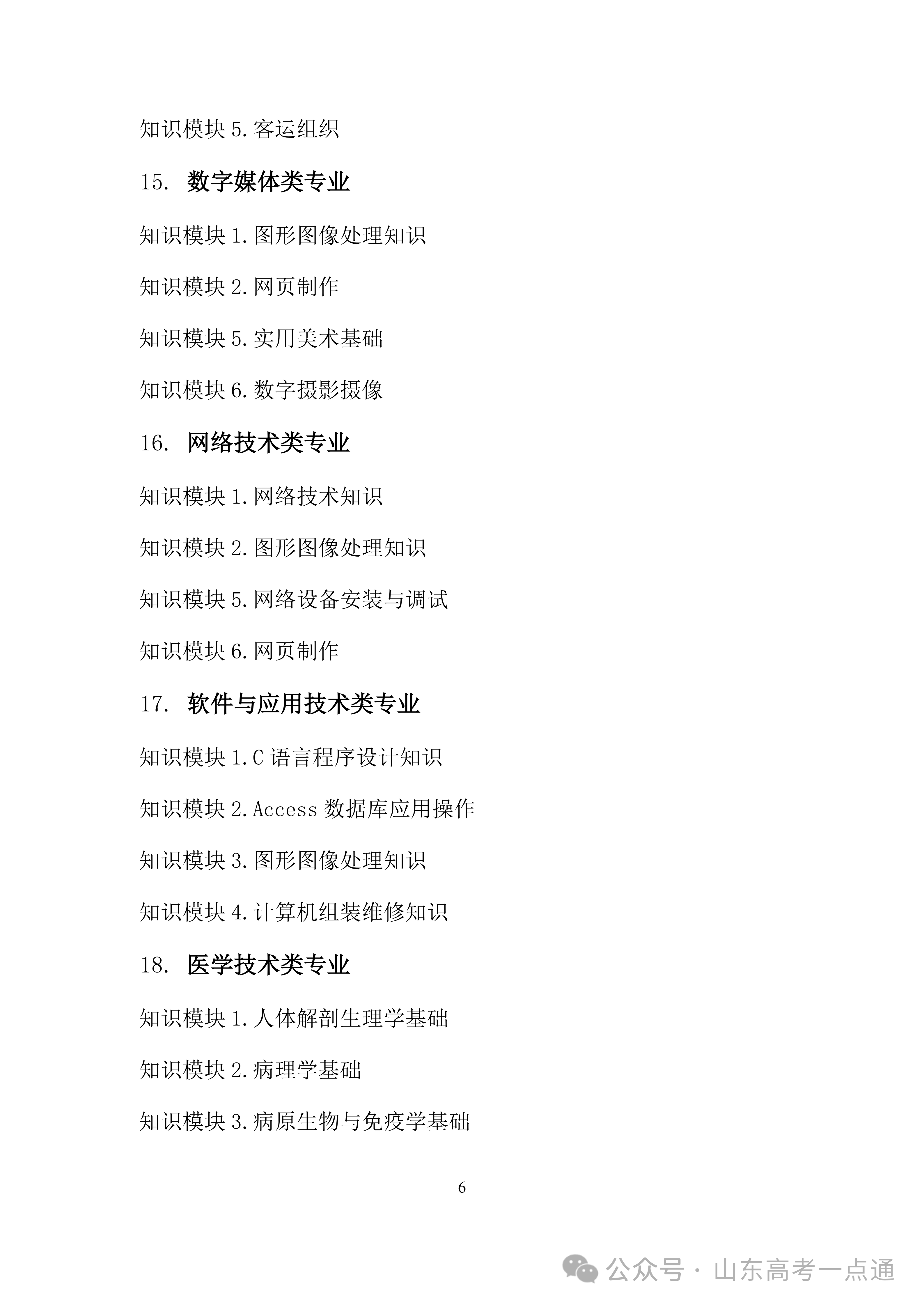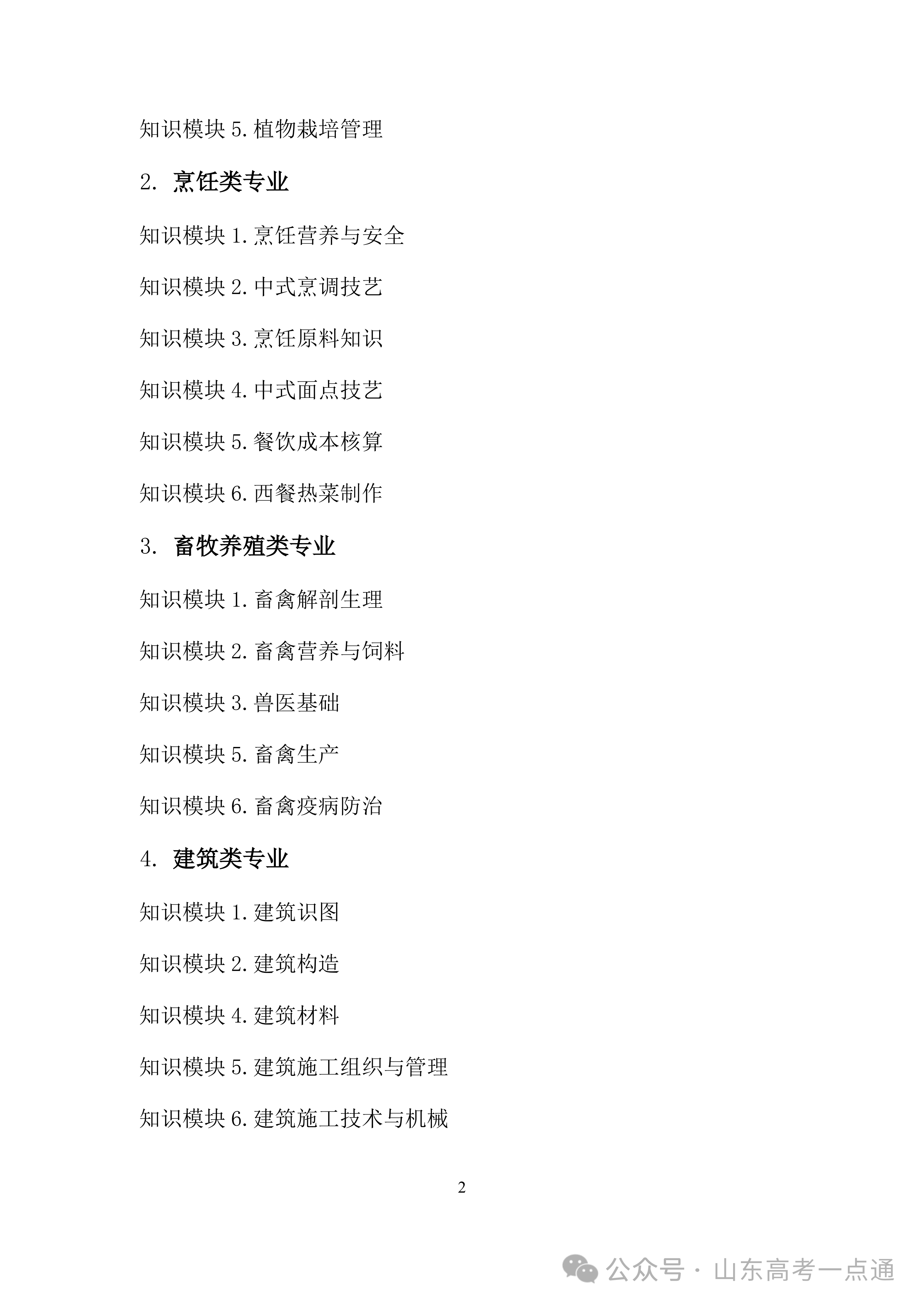 2026年山东省春季高考统一考试招生专业类别考试“知识”部分考试说明