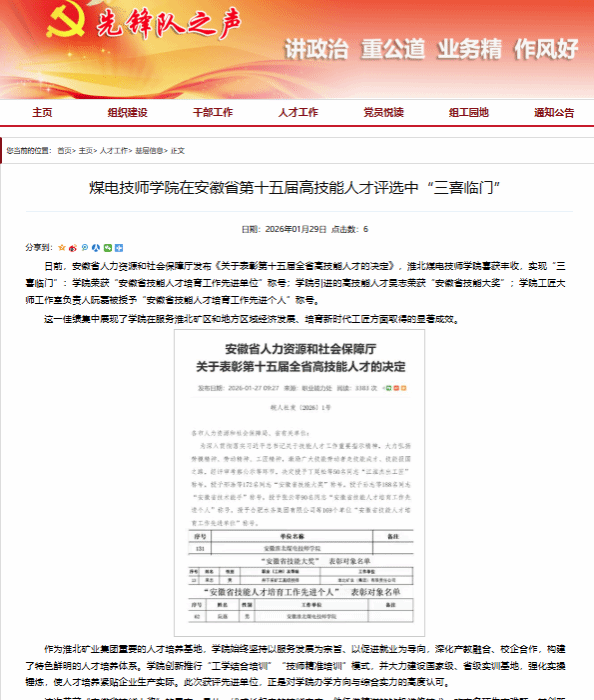 作为淮北矿业集团重要的人才培养基地,学院始终坚持以服务发展为宗旨、以促进就业为导向,深化产教融合、校企合作,构建了特色鲜明的人才培养体系。学院创新推行“工学结合培训”“技师精准培训”模式,并大力建设国家级、省级实训基地,强化实操锤炼,使人才培养紧贴企业生产实际。此次获评先进单位,正是对学院办学方向与综合实力的高度认可。
