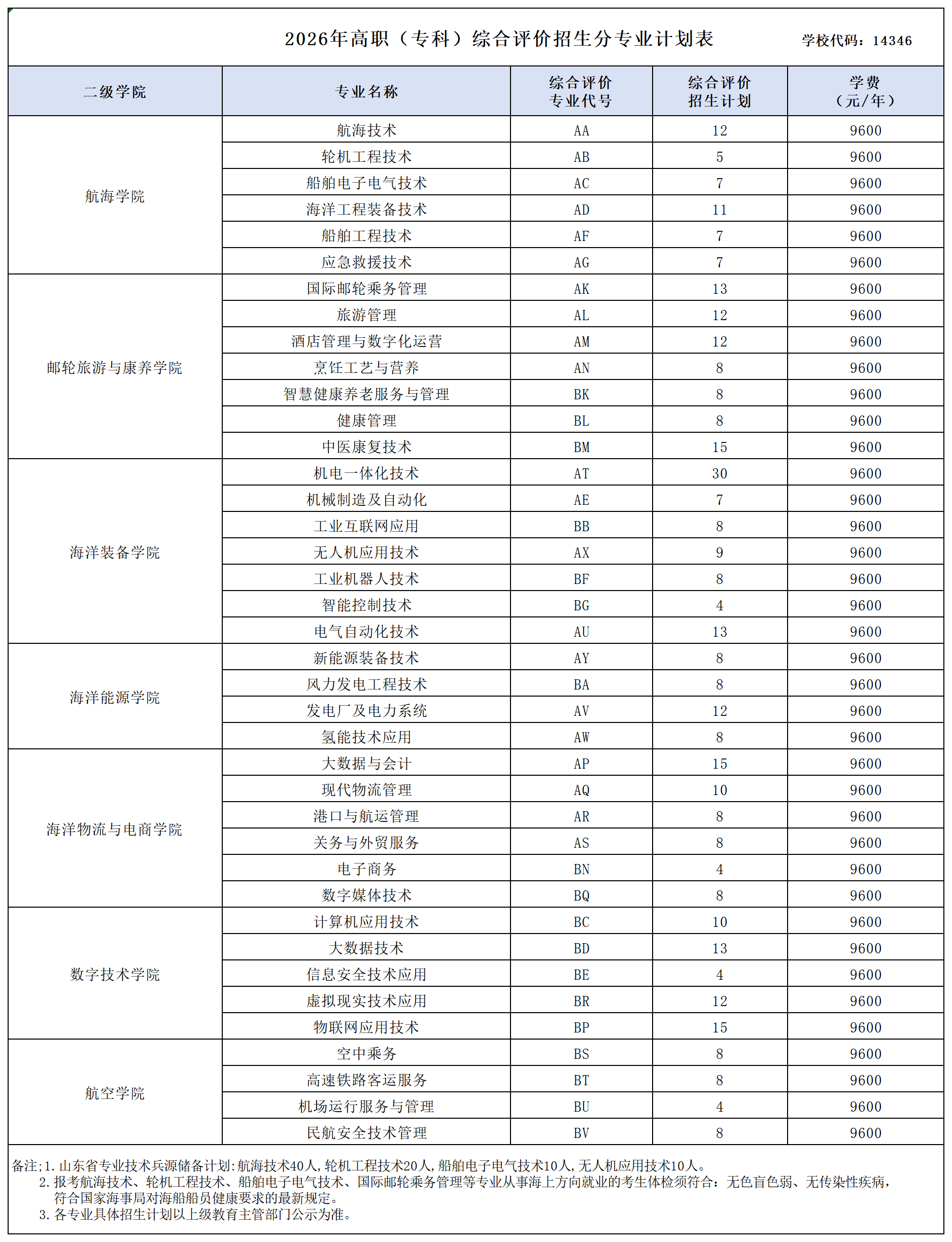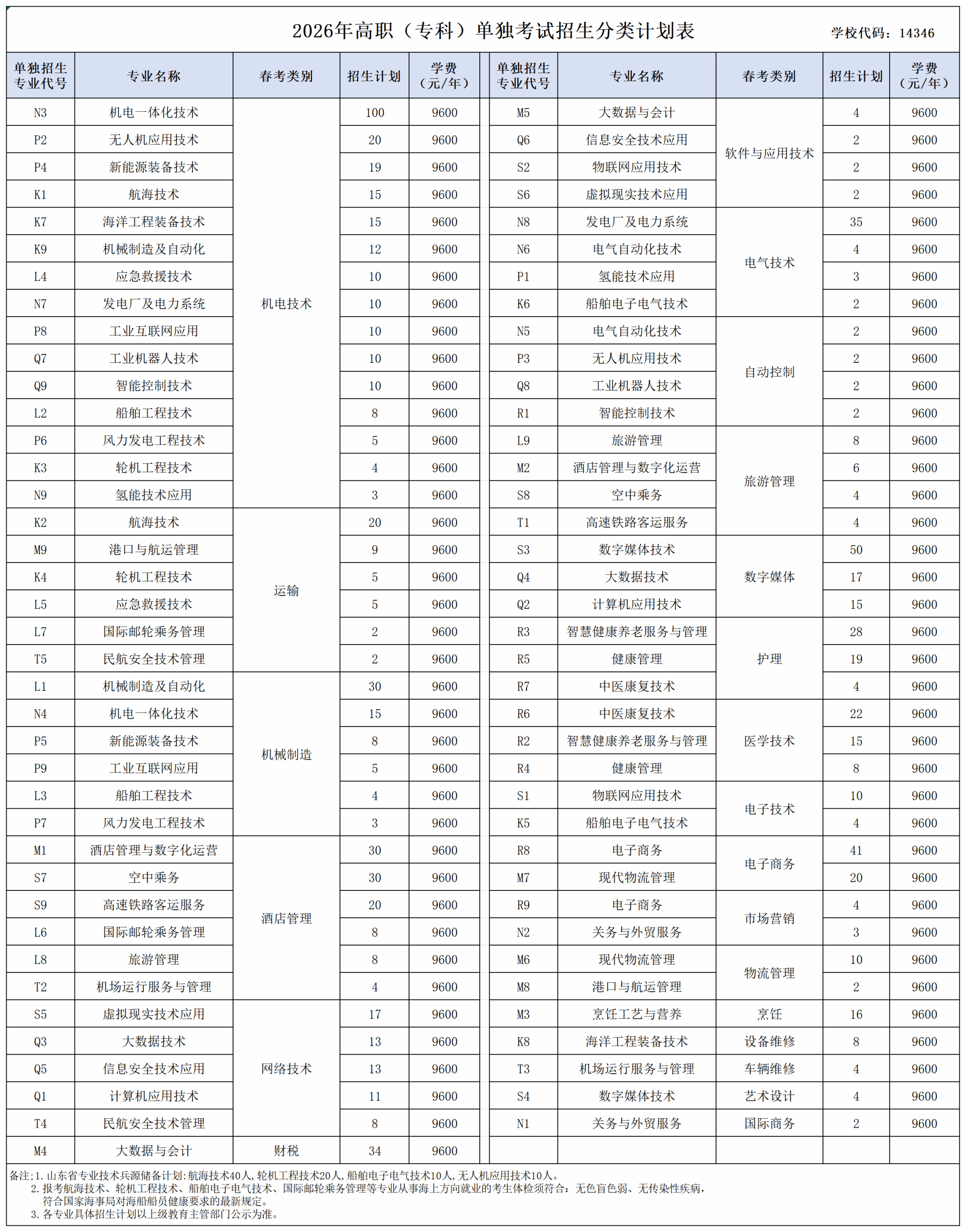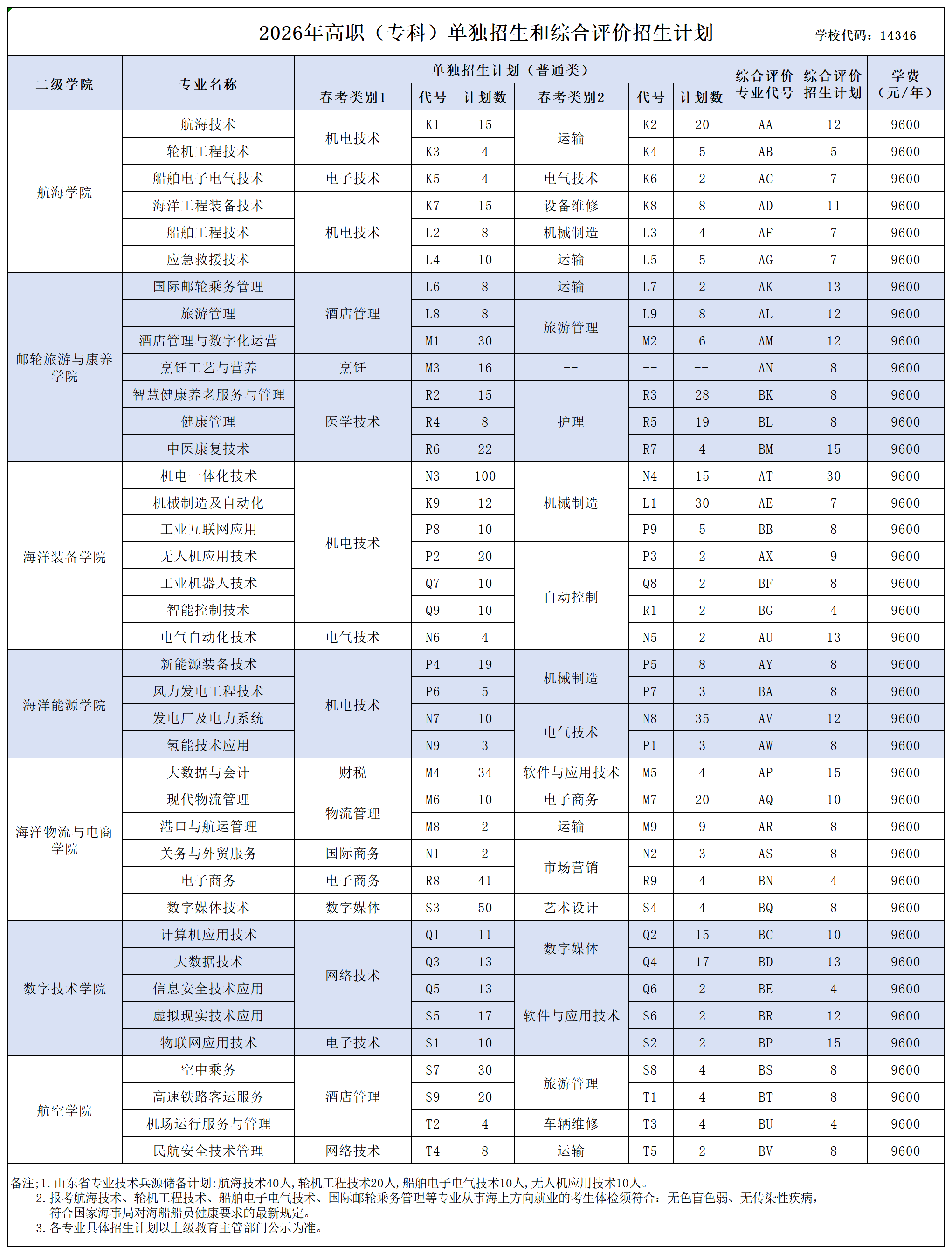 招生计划丨2026年单独招生和综合评价招生分类分专业计划
