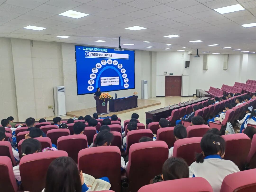 在工程学院报告厅,本科生院副院长、招生办公室副主任余明围绕高一年级学生和家长普遍关心的高中选科、大学专业设置等热点问题作《基于职业规划的大学专业选择》专题讲座,并简要介绍华农历史沿革、专业设置、办学特色、学科发展等。工程学院优秀学生代表2022级能源与环境系统工程专业陈玥滢同学、农业机械化及其自动化专业钟文怡同学现场分享了自己在华农的成长经历和保研经验,勉励学弟学妹们早日规划个人发展路径,圆梦理想大学。互动交流环节,工程学院辅导员梅宏玉老师、人工智能与低空技术学院辅导员张忠伟老师现场解答同学们关于华农人才培养、就业升学、校园环境等方面疑问。