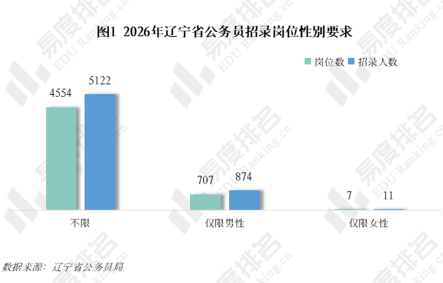 超85%的岗位对性别无要求,其余对性别有要求的岗位中,707个岗位限男性报考,仅7个岗位限女性报考。