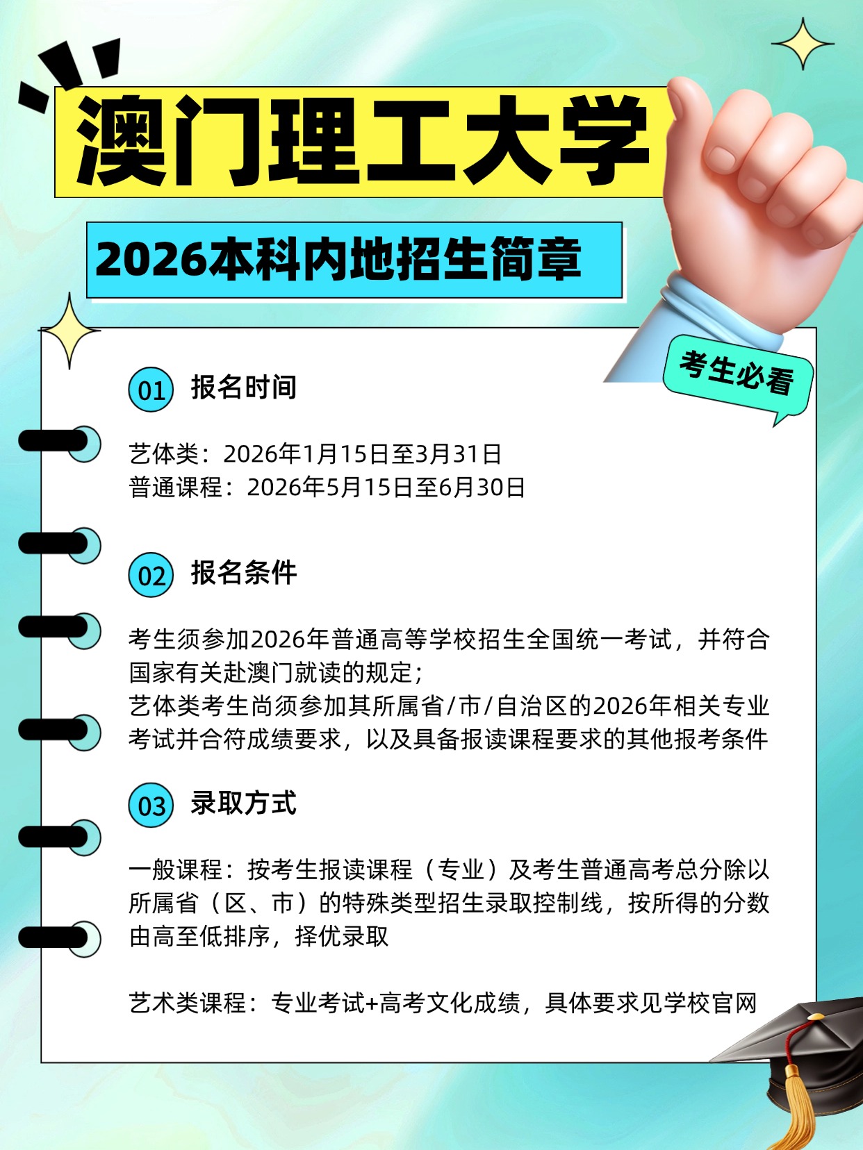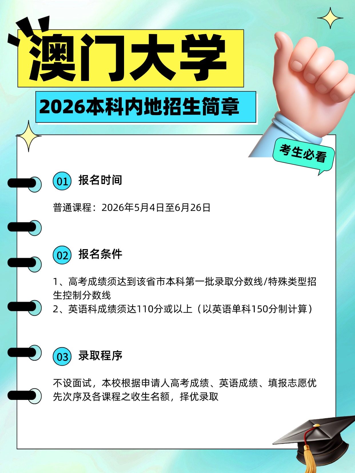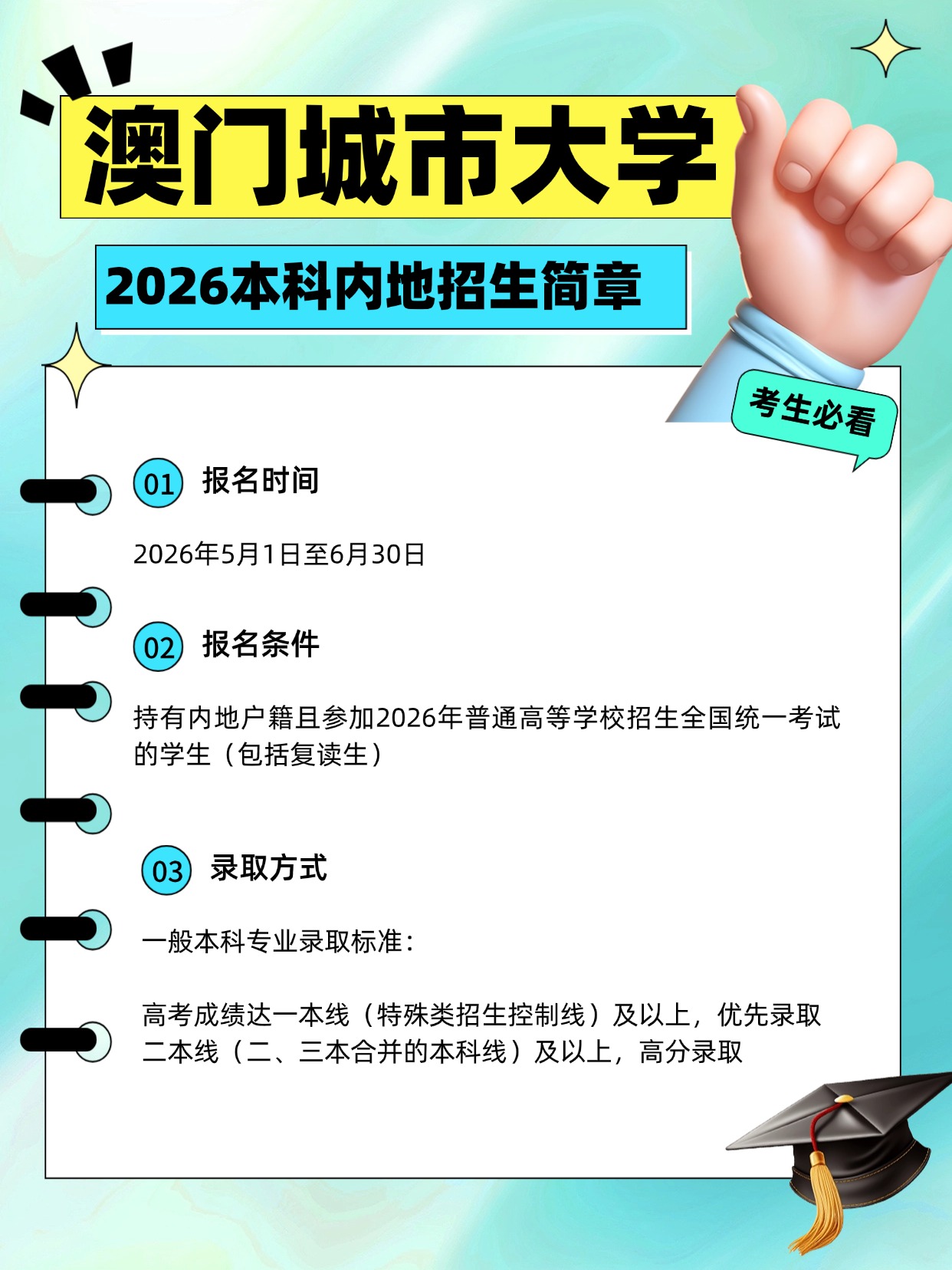 目前,所有澳门高校的2026年内地学生招生简章均已发布,快跟优志愿一起了解