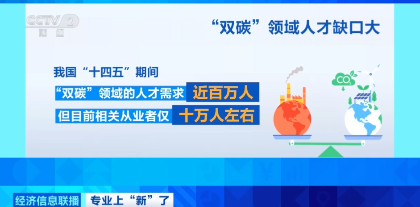 “十四五”期间,我国“双碳”(碳达峰、碳中和)领域的人才需求预计接近100万人,而当前相关从业人员仅约10万人,存在近90万人的巨大缺口。人才供给仅能满足需求的约一成,未来就业前景十分广阔。