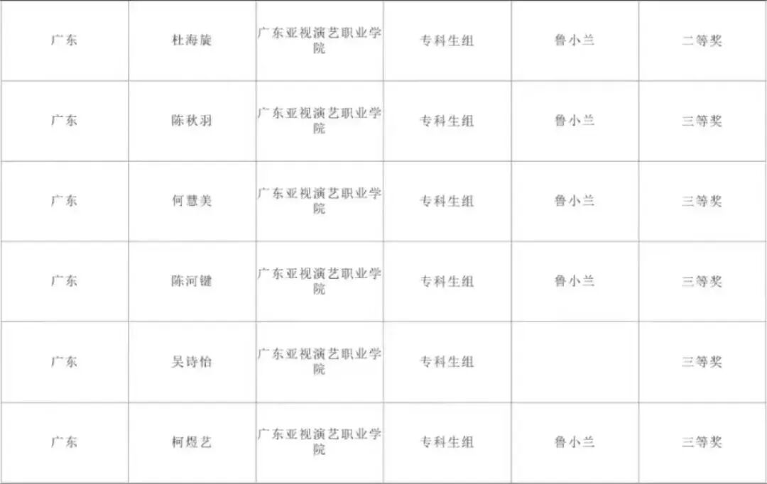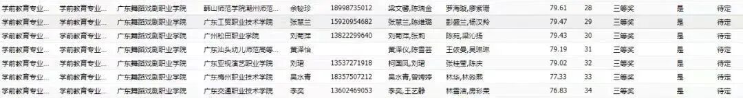广东省学前教育技能大赛获奖学生