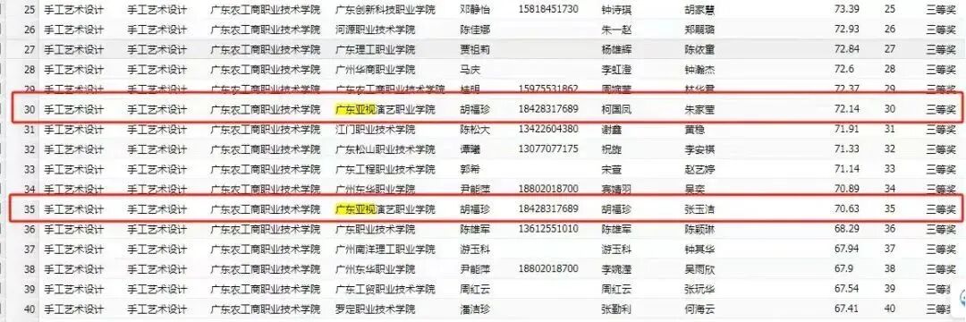 广东省手工艺术设计大赛获奖学生