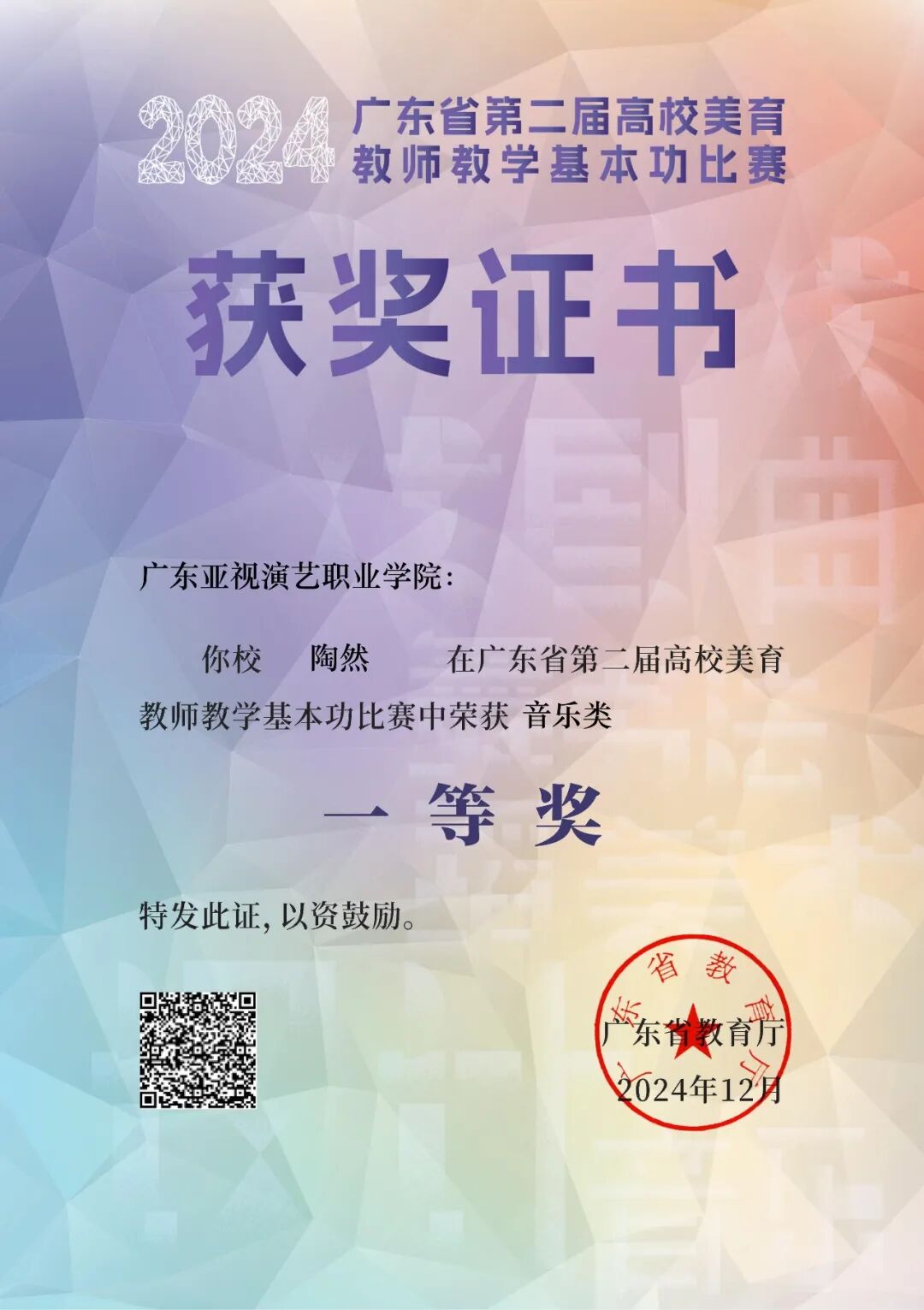 专业证书:教师资格证、美术教育师认证、艺术指导师资格、钢琴与声乐等级认证、舞蹈基础技能证书等。