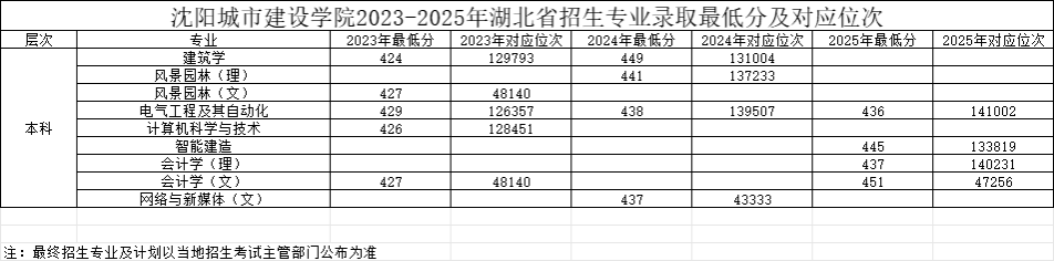 湖北2023-2025年招生专业录取最低分数线及对应位次