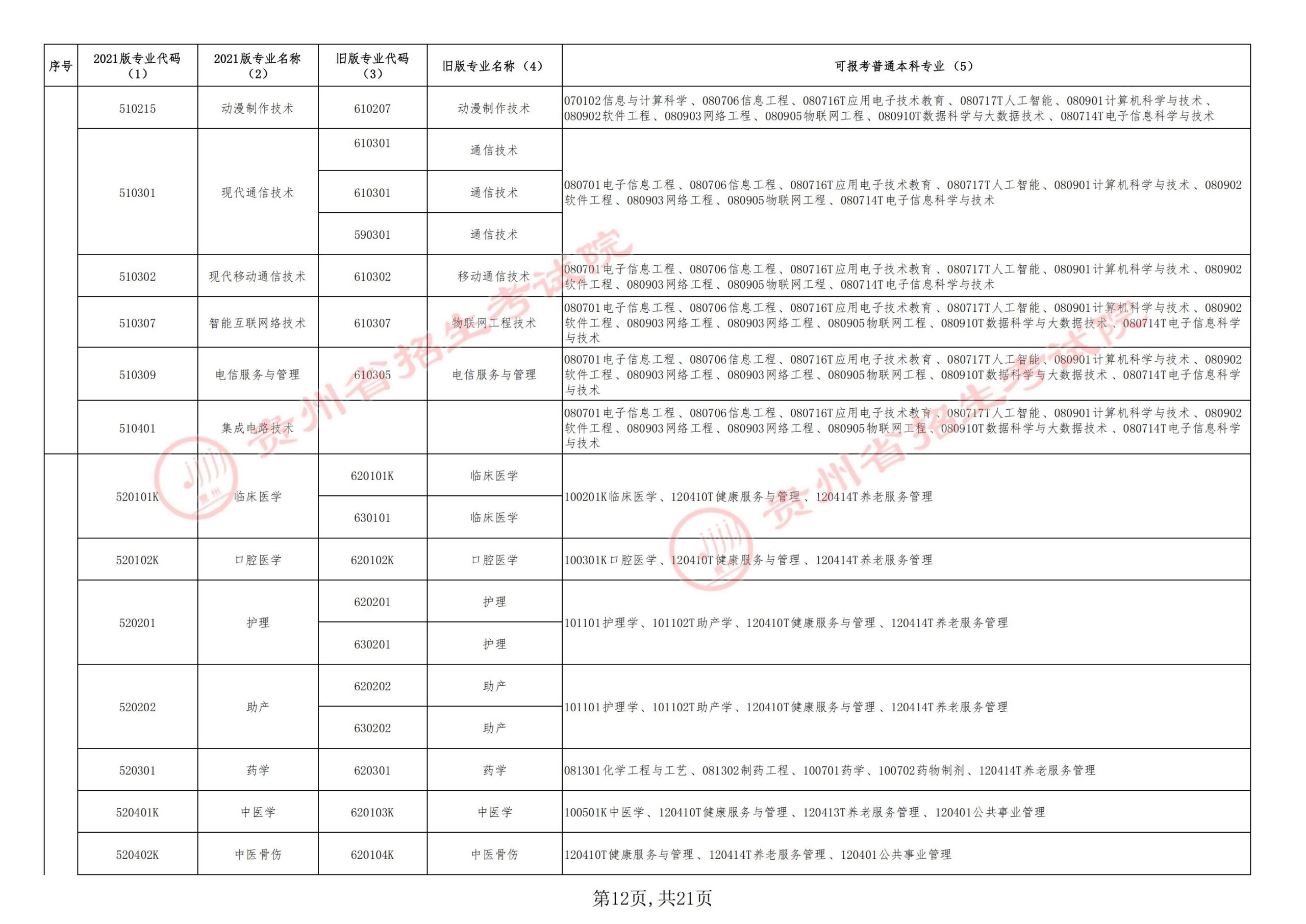 《贵州省2026年专升本普通本科与高职(专科)专业对应指导目录》公布
