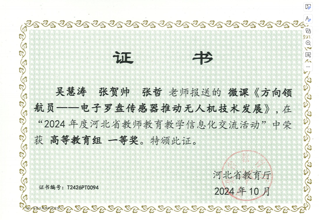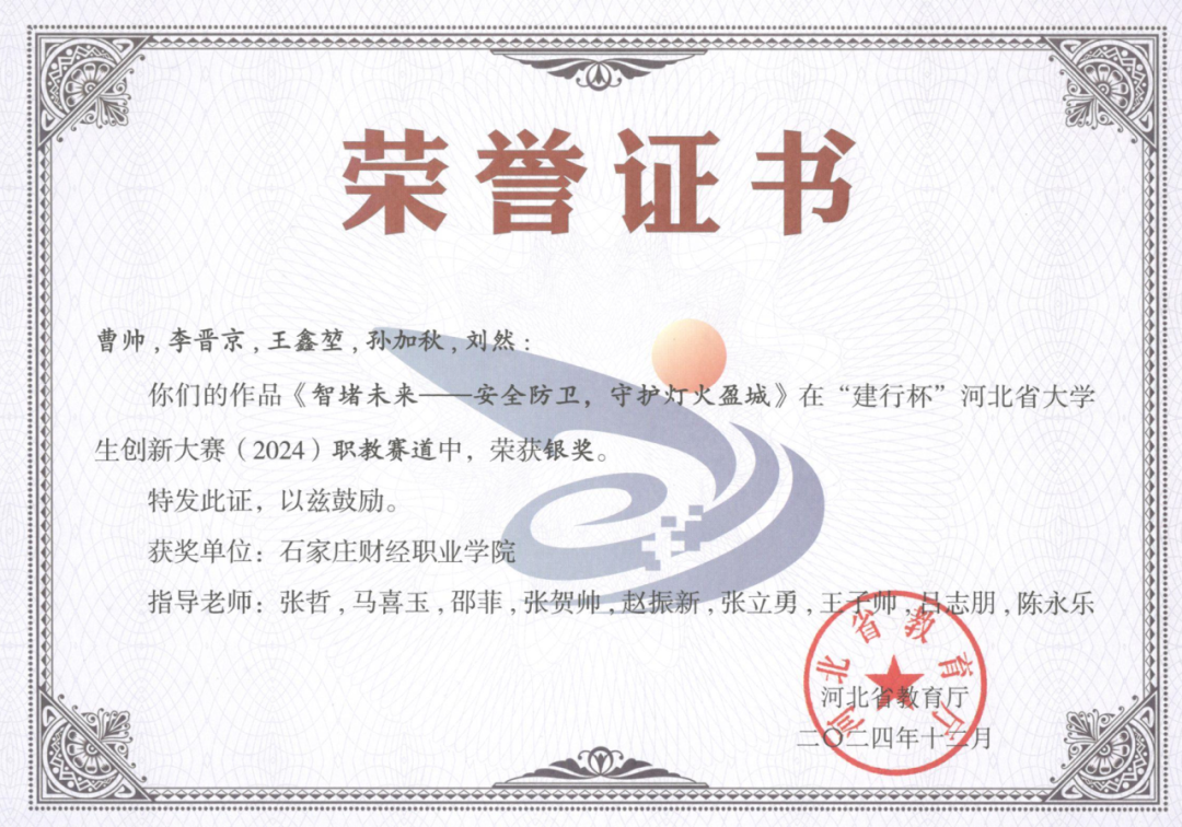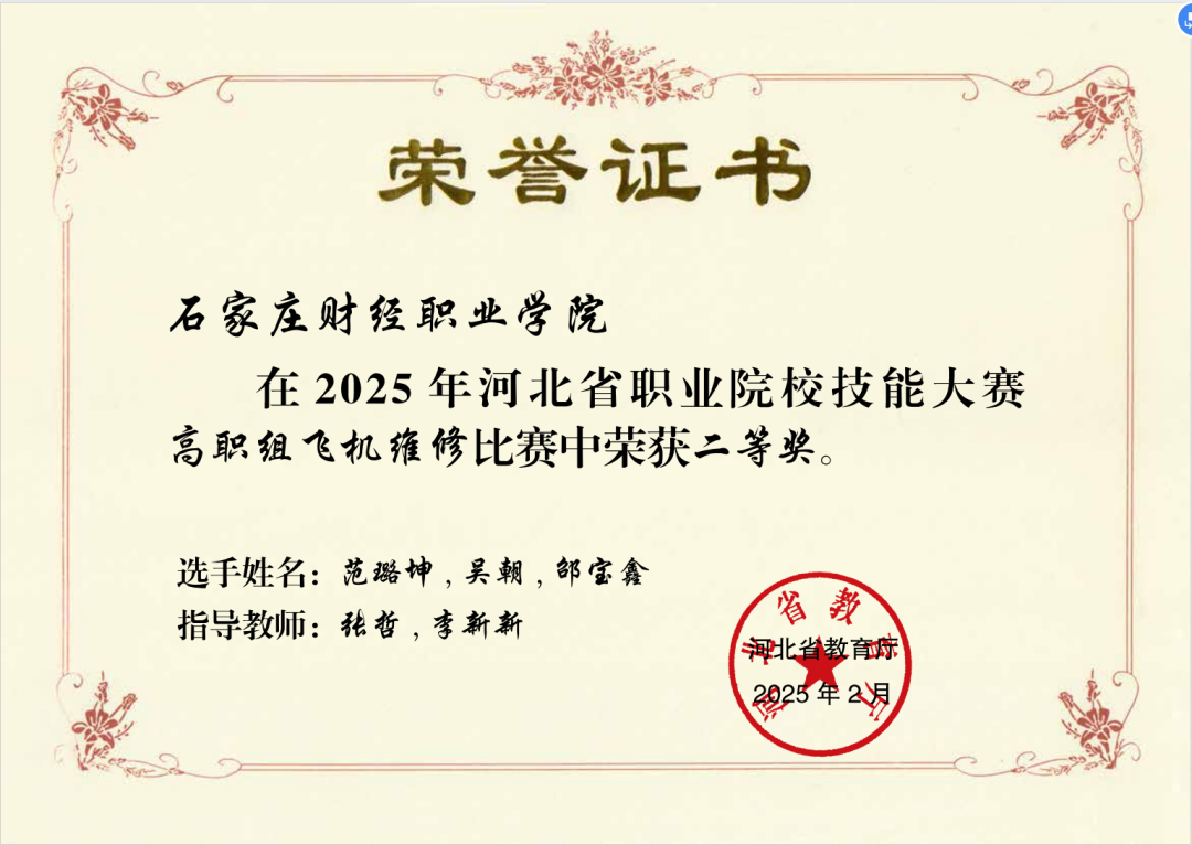 交通工程学院坚持以赛促教,以赛促学,提升学生技能水平。荣获省级“挑战杯”竞赛特等奖1项,一等奖2项,二等奖2项和三等奖7项;荣获河北省大学生创新大赛二等奖1项,三等奖1项;荣获河北省学生技能大赛“职业礼仪”(高职组)赛项一等奖,“飞机维修(高职组)” 赛项二等奖,“城市轨道交通运营管理技术”技能大赛比赛二等奖,“高铁信号与客运组织”技能大赛二等奖;“智能电子产品设计与开发”技能大赛三等奖2项,“工业机器人技术应用”技能大赛三等奖2项;荣获全国信息素养大赛二等奖1项,河北省高职院校信息素养大赛(学生组)特等奖1项、二等奖3项;荣获河北省全国新能源汽车关键技术技能大赛二等奖1项等职业技能奖项。