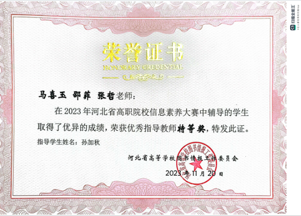 从事高职教育10余年,具有丰富的教学经验,坚持产教融合,将行业企业前沿技术有机融入教学中。从教期间,发表论文10余篇,其中EI检索论文2篇,主持参与省厅级课题10余项;指导学生参加全国信息素养大赛获国赛二等奖1项,指导学生参加河北省职业技能比赛获省级二等奖1项、三等奖2项,指导学生参加省级创新创业比赛获省级二等奖1项,指导学生参加河北省信息素养大赛获省级特等奖2项,指导学生参加河北省职业规划大赛获省级三等奖1项;主持编写的教材获批“十四五”规划教材,主持参与多门精品在线课程的制作;参与河北省教师教育教学信息化交流活动获省级一等奖,获得全国教师信息素养提升实践活动典型作品1项。