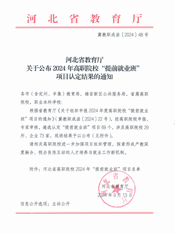 8个供需对接育人项目获教育部批准立项,开设“提前就业班”,实现课程体系与岗位标准、教学场景与生产场景的深度融合,毕业生岗位技能达技师水平。