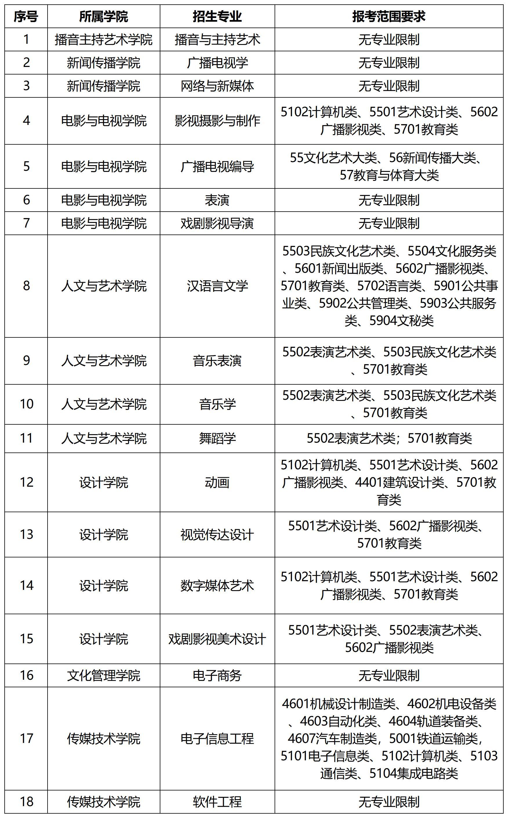 2.分专业招生计划另行通知。具体招生专业、报考范围要求、考试科目详见《2026年武汉传媒学院专升本考试招生专业、报考范围要求及考试科目》(附件1)。