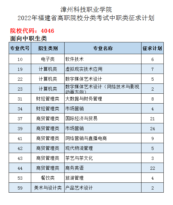 【高职分类】2022年高职分类招考面向中职生类征求计划