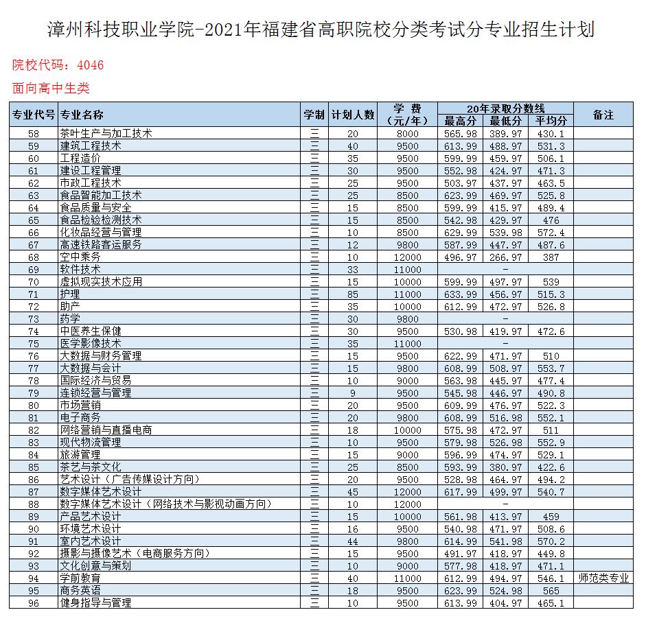 【高职分类】2021年福建省高职院校分类考试分类别招生专业及计划