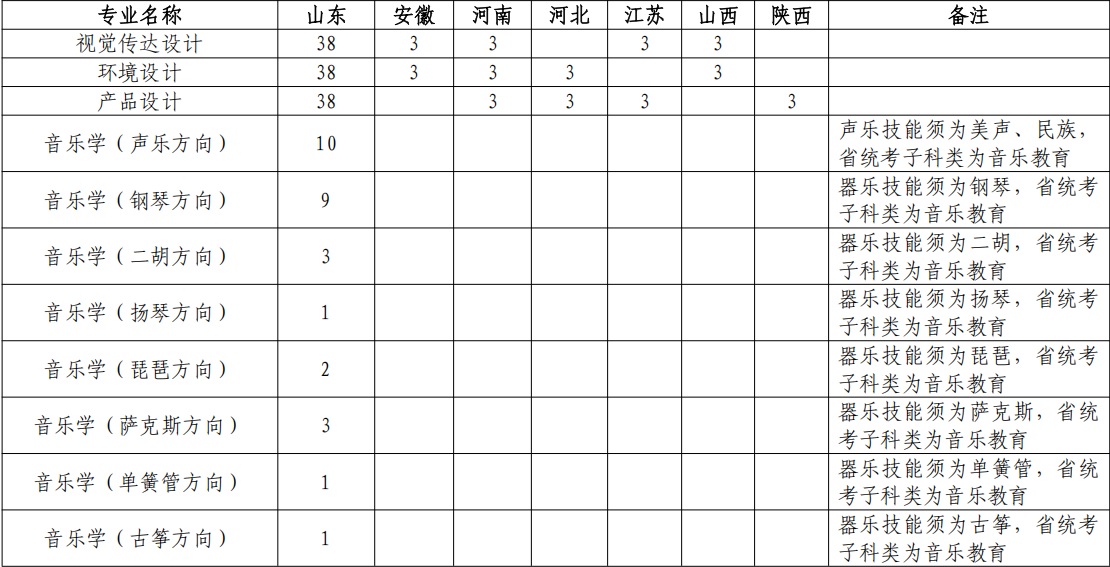 美术类专业、音乐学专业使用各省的统考成绩,学校不再组织校考,考试科目及要求按照相应省份统考相关要求执行。