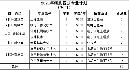 2021年河北对口招生计划