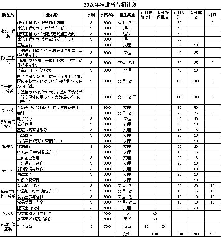 2020年河北普招计划