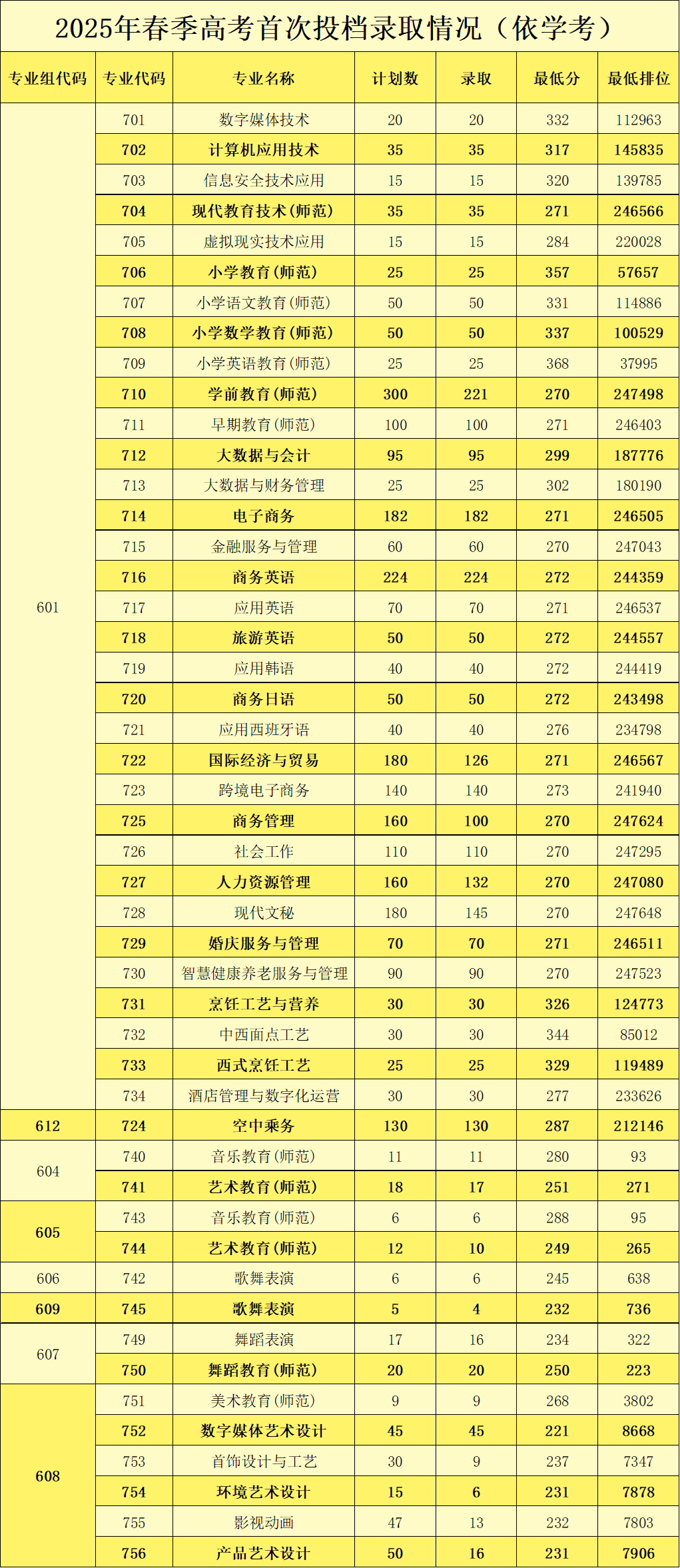 春季招生录取分数与排位公布