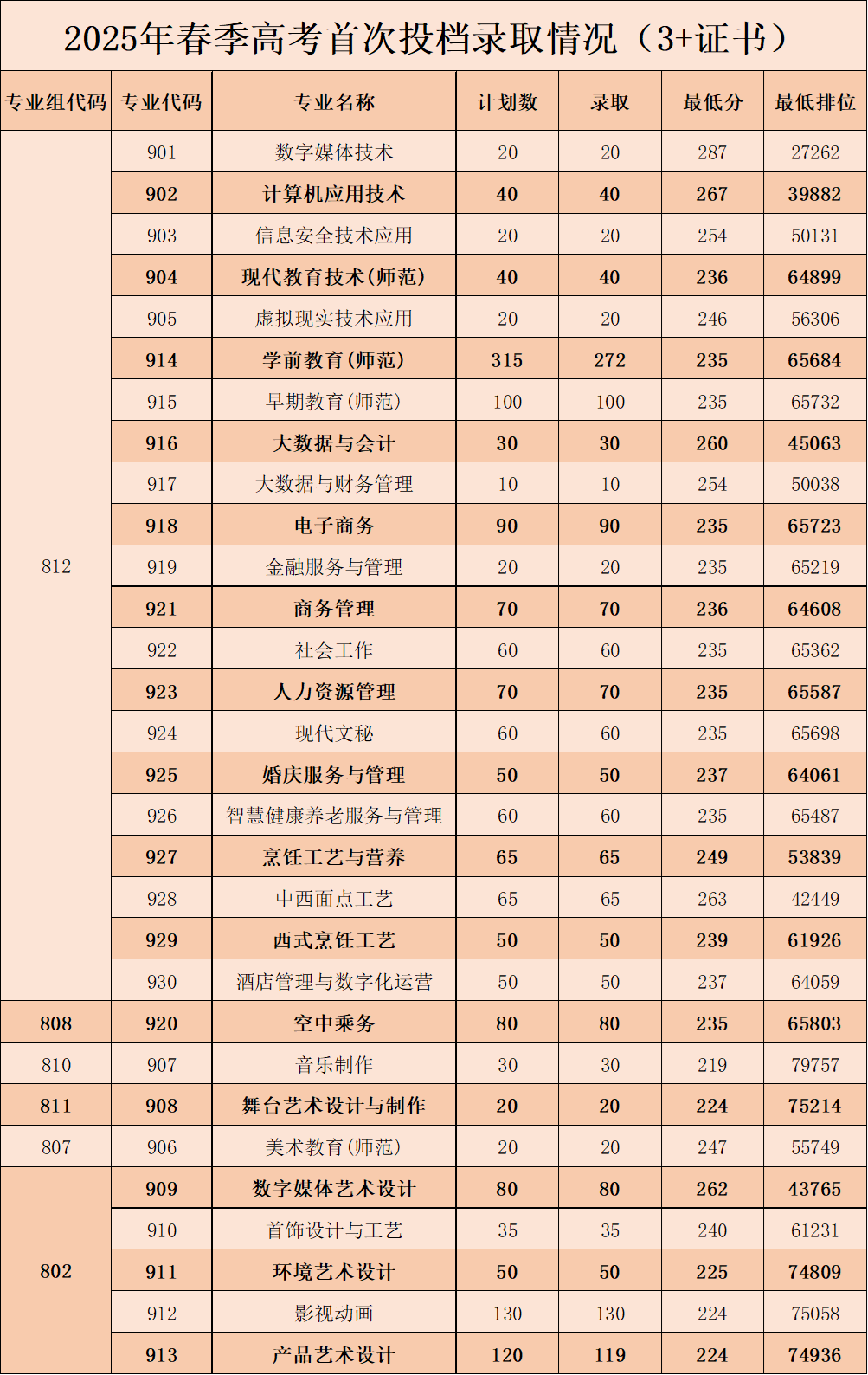 3+证书录取情况