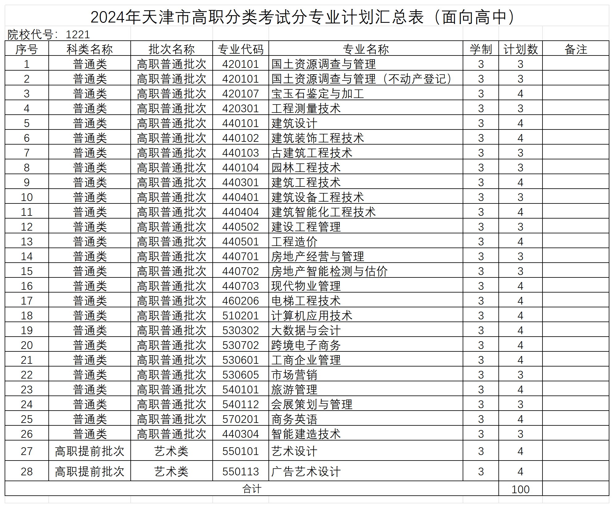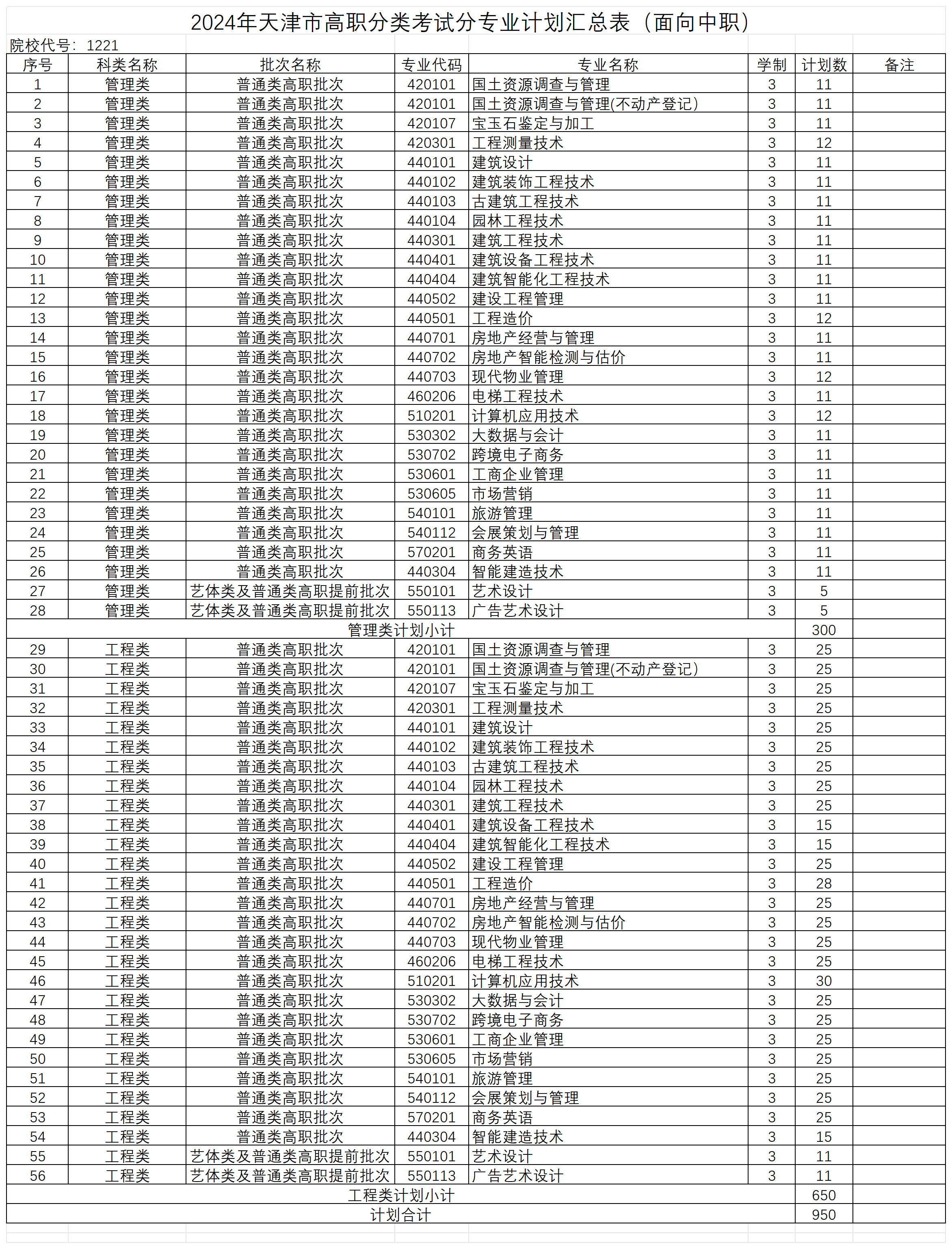 2024年各批次招生计划