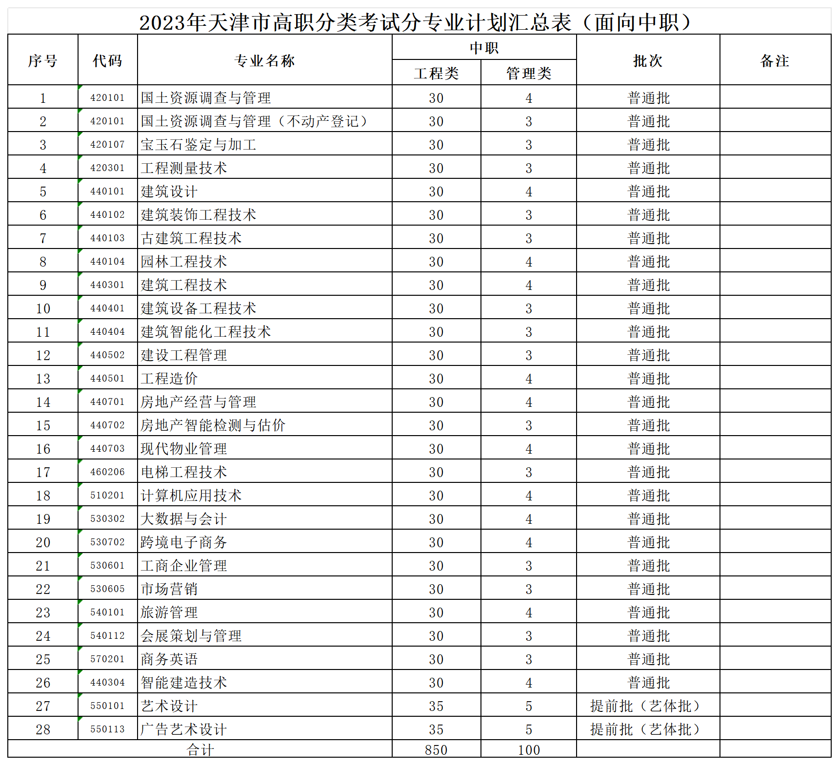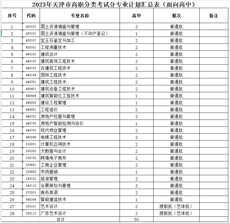 2023年各批次招生计划